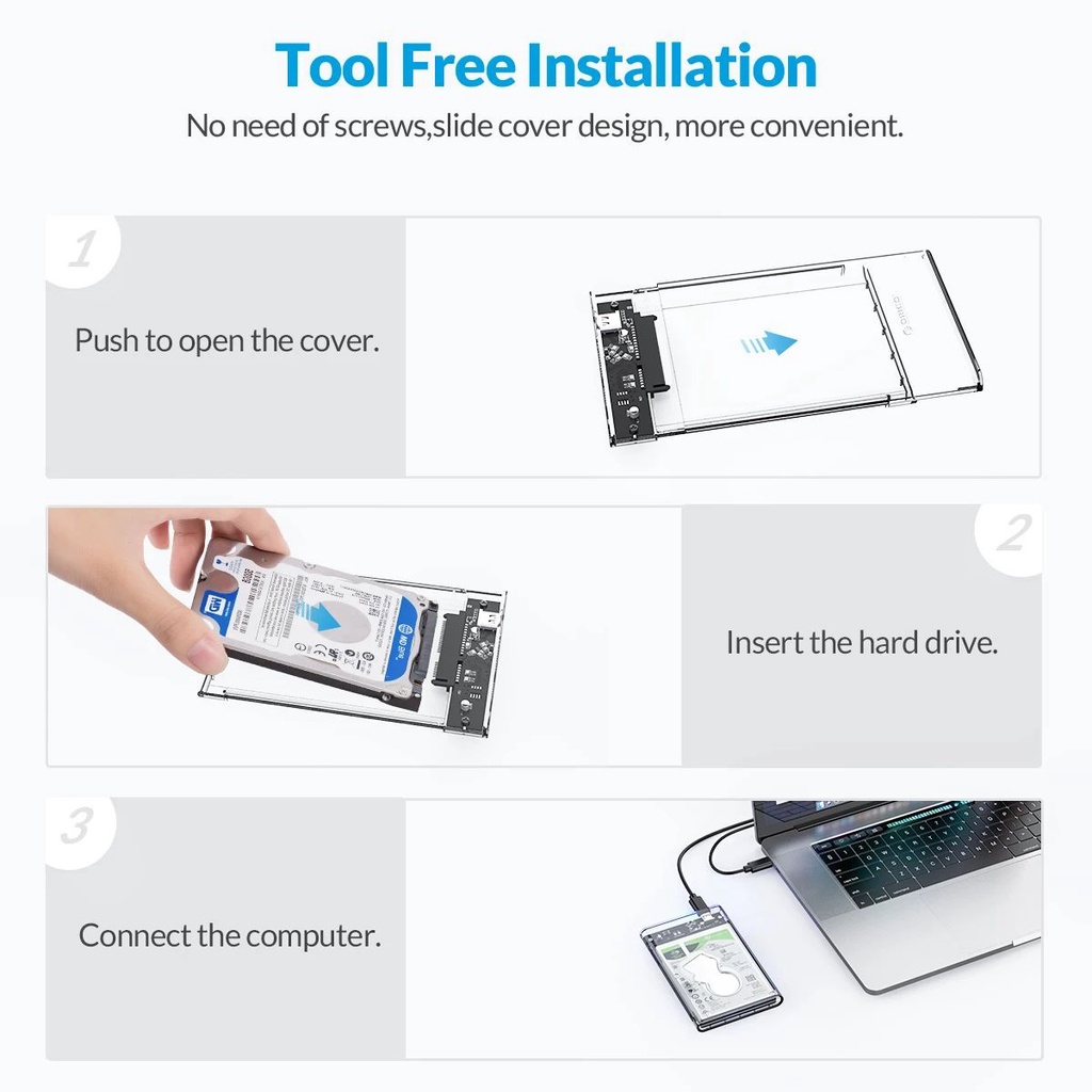 Orico HDD Case SSD Enclosure 2.5inch ฮาร์ดไดรฟ์ USB 3.0 แบบใส รองรับโปรโตคอล UASP สําหรับ 7-9.5 มม. ขนาด 2.5 นิ้ว (2139U3)