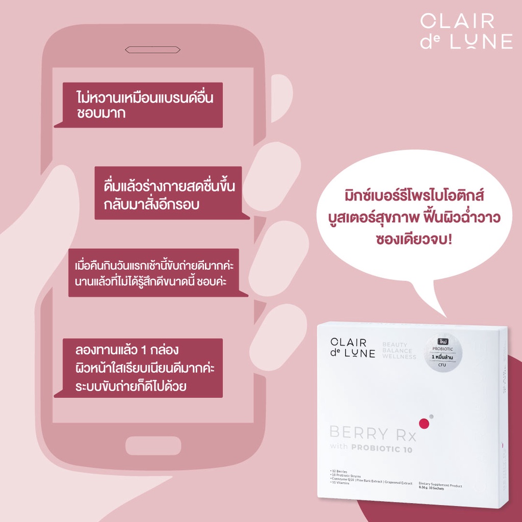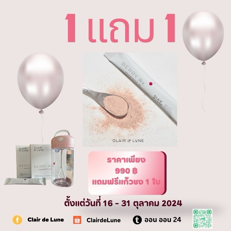 1 แถม 1 วันนี้ ถึง 31 ต.ค. นี้เท่านั้น !!! Clair de Lune Berry Rx(แคลร์ เดอ ลูน เบอร์รี่ อาร์เอ๊กซ์ วิท โพรไบโอติก 10)