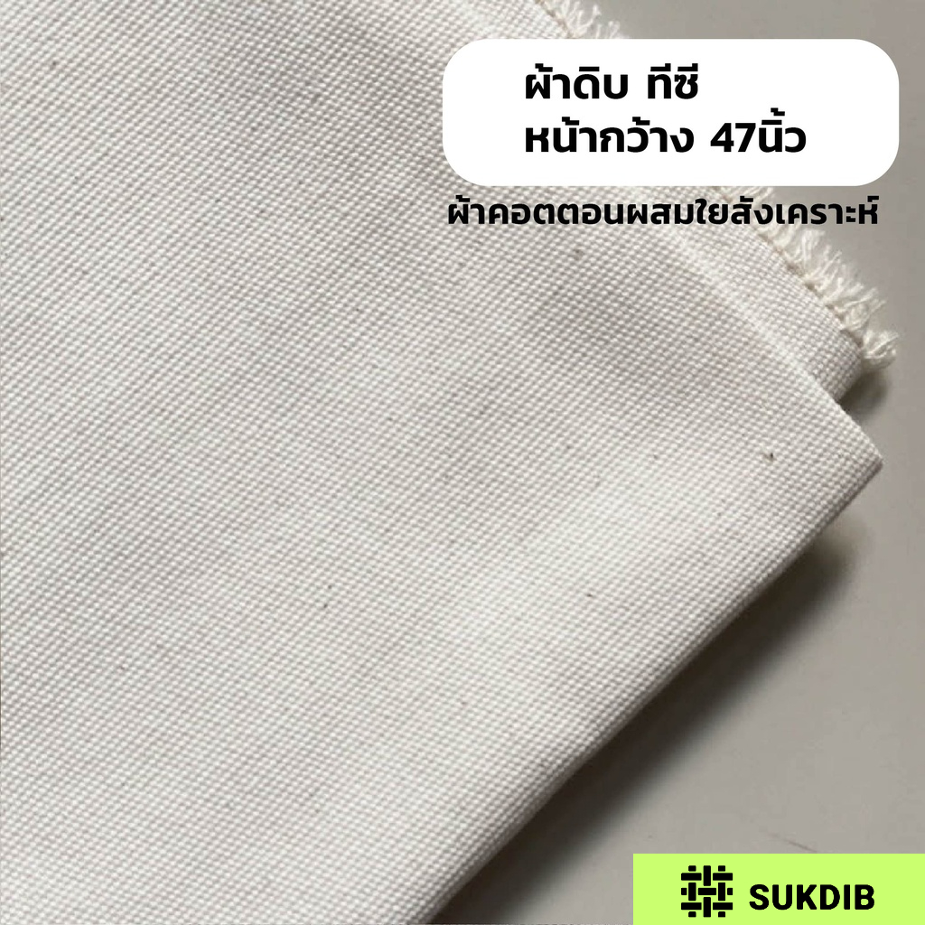 ผ้าดิบ ผ้าแคนวาส TC ผสมใยสังเคราะห์ สีออกขาวเนื้อหนา เหมาะสำหรับทำกระเป๋าพิมพ์ลาย กระเ ป๋า หน้ากว้าง 47นิ้ว(119cm)