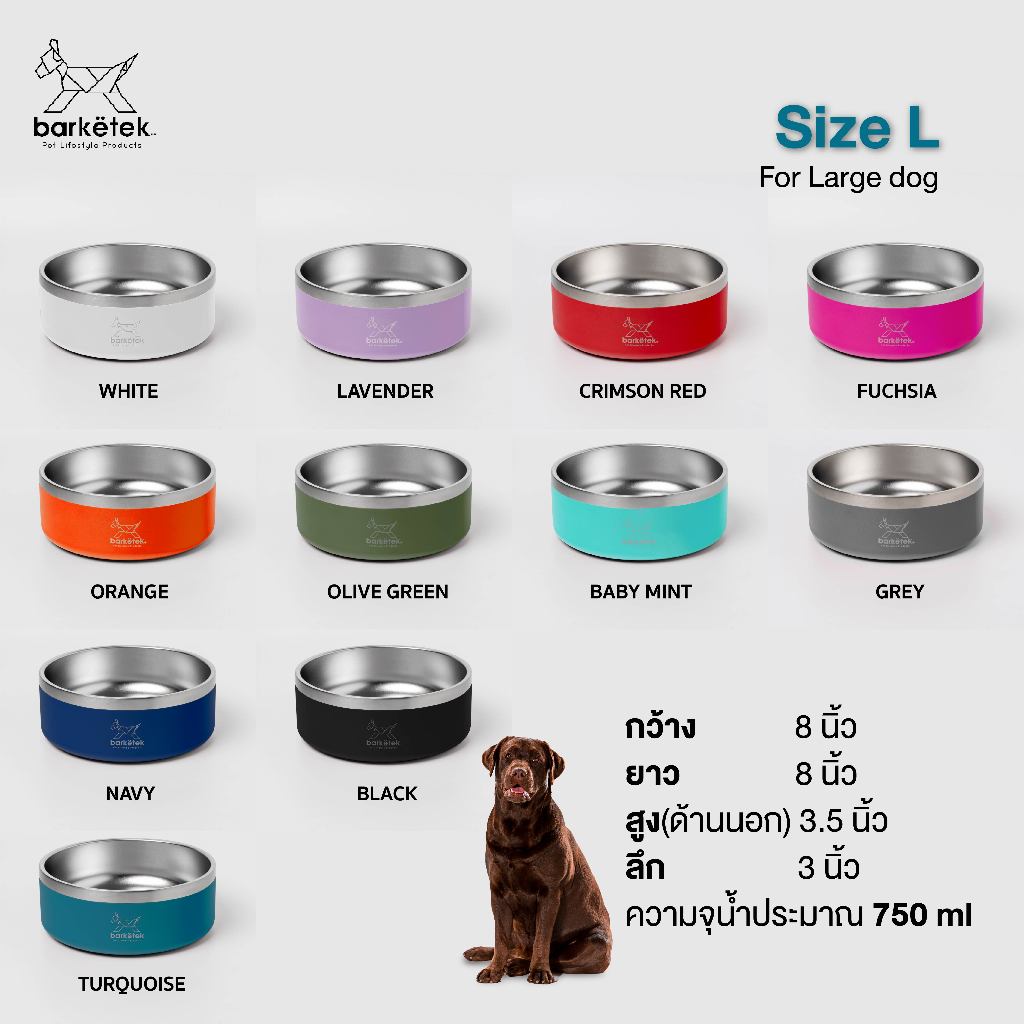 Barketek - ชามเย็นสำหรับสุนัข ชามน้ำหมา น้ำเย็นนาน 8 ชั่วโมง Size M / L
