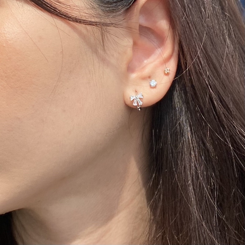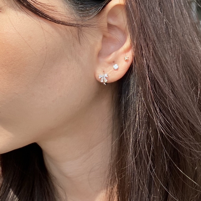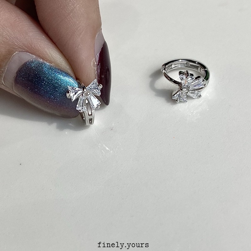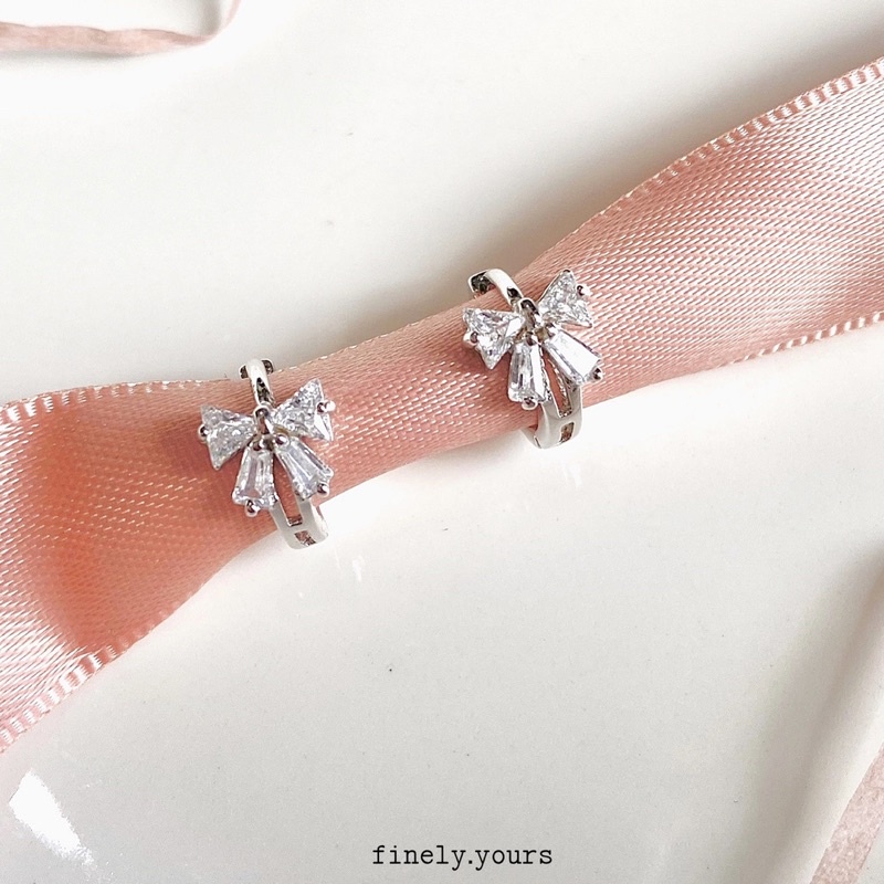 finely.yours 925 Stering Silver Jewelry| ต่างหูห่วงเงินแท้ ประดับพลอยรูปโบ // Bow Hoops Earrings