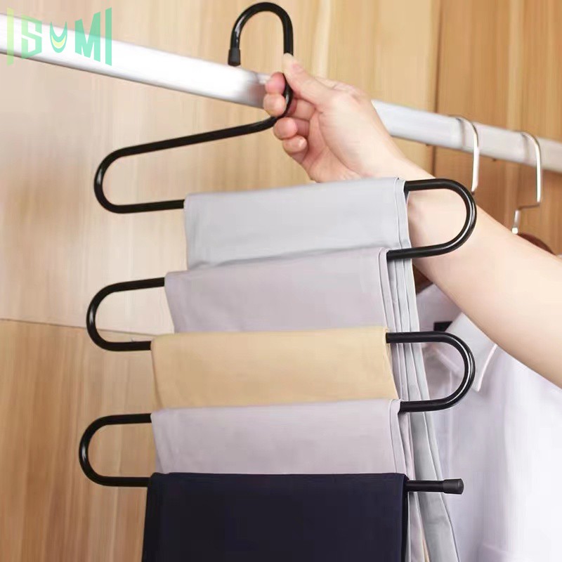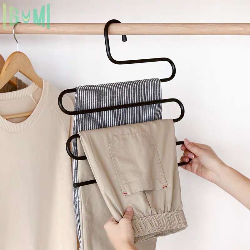 ไม้แขวนกางเกง ไม้แขวนหยัดพื้นที่ ไม้แขวนรูปตัวS แขวนกางเกงได้มากถึง 5 ตัว ไม้แขวนเสื้อ ไม้แขวนกางเกง