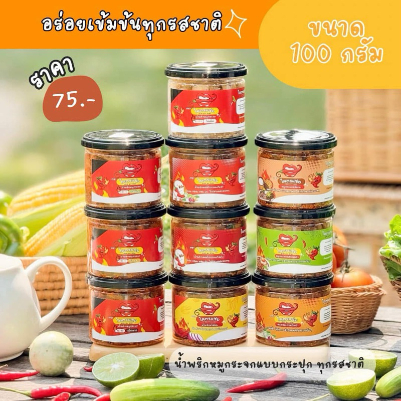 🔥ขายดี ส่งไวสุด🔥 น้ำพริกหมูกระจก โคตรแซ่บ หนังไก่กรอบ เห็ดกรอบ เครื่องแน่น!! ไร้มัน ปริมาณ 100 g.