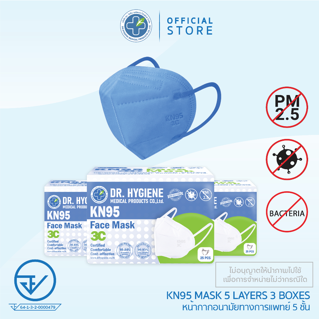 [Flagship Store]Dr.Hygiene -หน้ากากอนามัย KN95 หน้ากาก PM2.5 แม ส แมสปิดจมูก หน้ากากอนามัยทางการแพทย์ - 25 ชิ้น 3 กล่อง