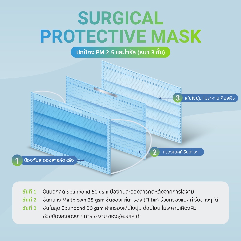 [Flagship Store]Dr.Hygiene -Surgical mask 50 ชิ้น 3 กล่อง - หน้ากากอนามัย หน้ากากอนามัยทางการแพทย์ แมสปิดจมูก150 ชิ้น