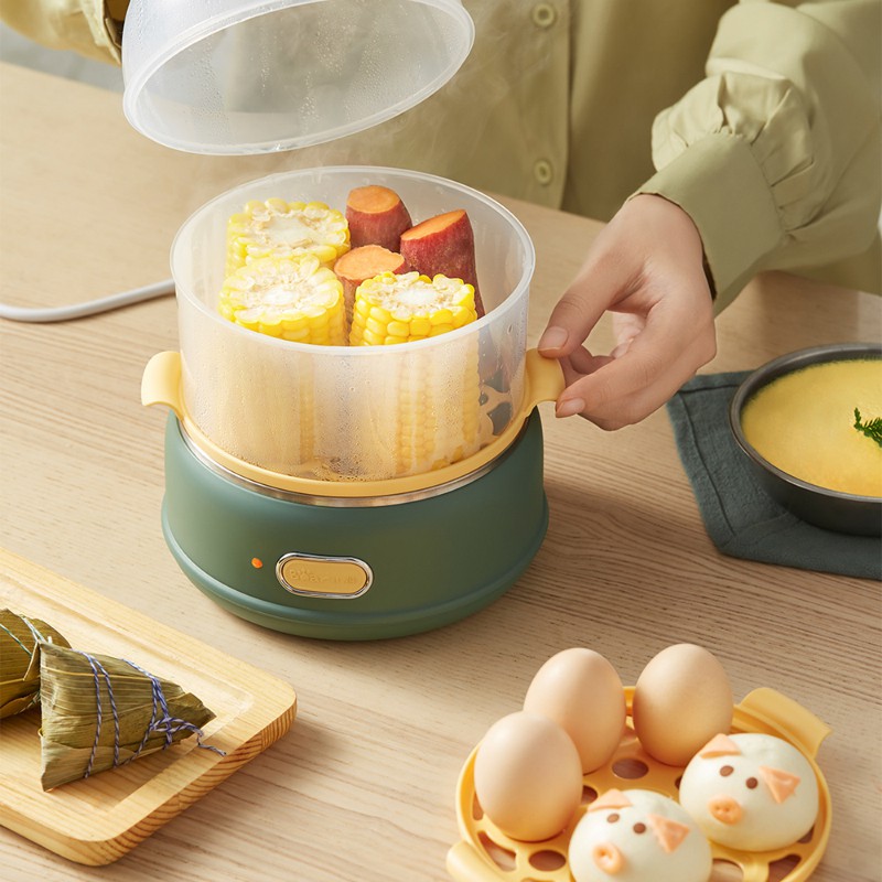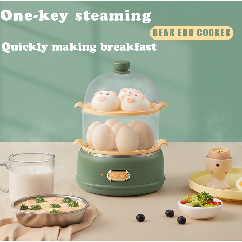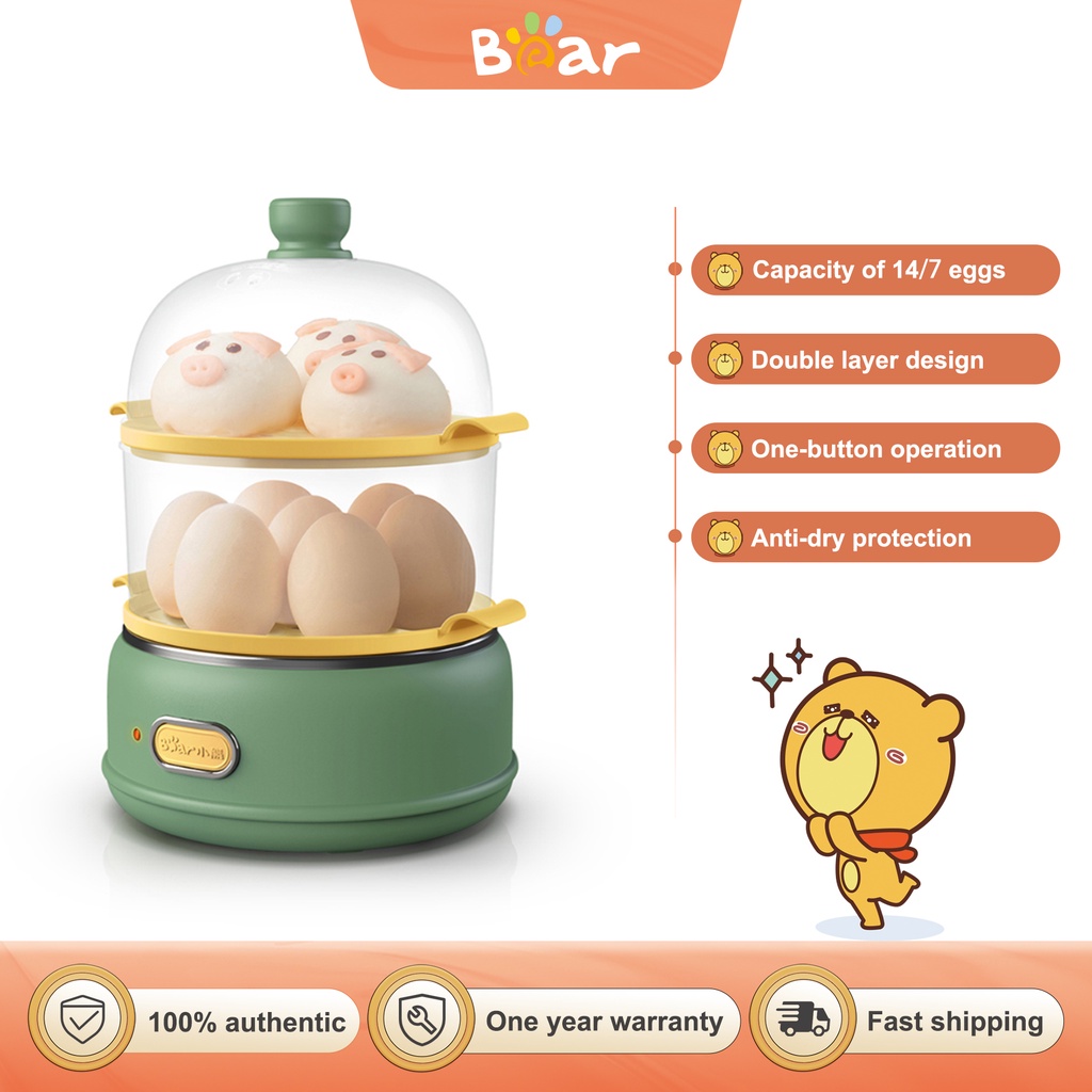 BEAR หม้อหุงไข่ 7 หรือ 14 ฟอง ความจุเครื่องนึ่งไข่สองชั้น, หม้อต้มไข่ไฟฟ้าอย่างรวดเร็ว พร้อมเกี๊ยวผัก, ส ีเขียว ZDQ-B14E8