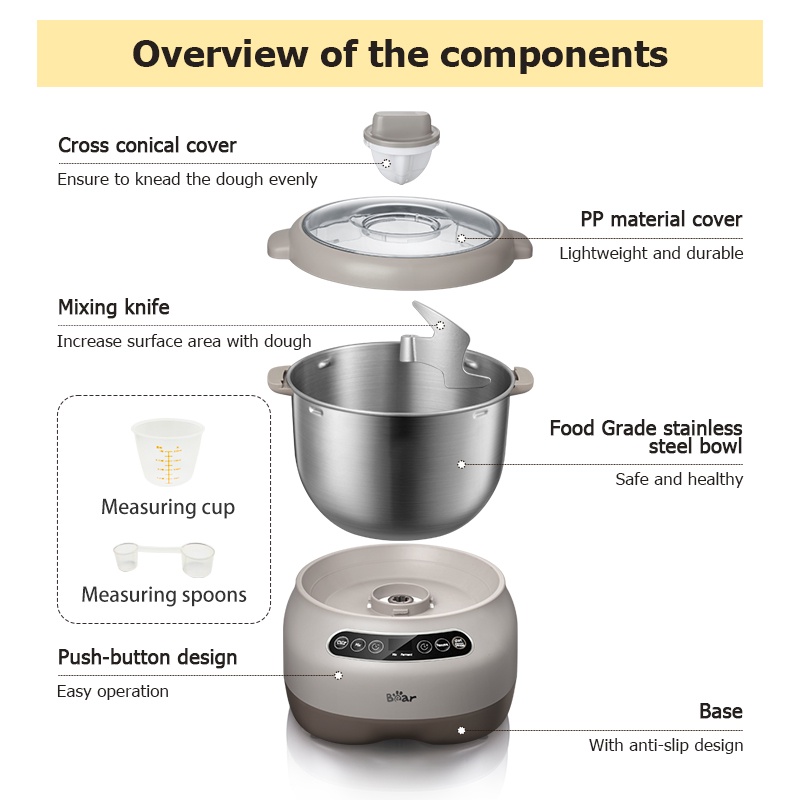 Bear Dough Mixer 7L Dough Mixer 250W เครื ่ องผสมไฟฟ ้ าสําหรับขาตั ้ ง Baking Mixer HMJ-A70C1