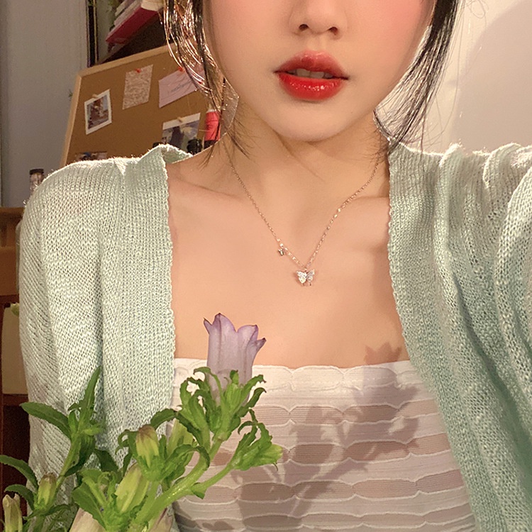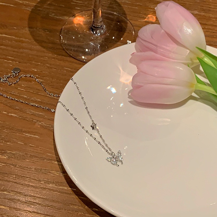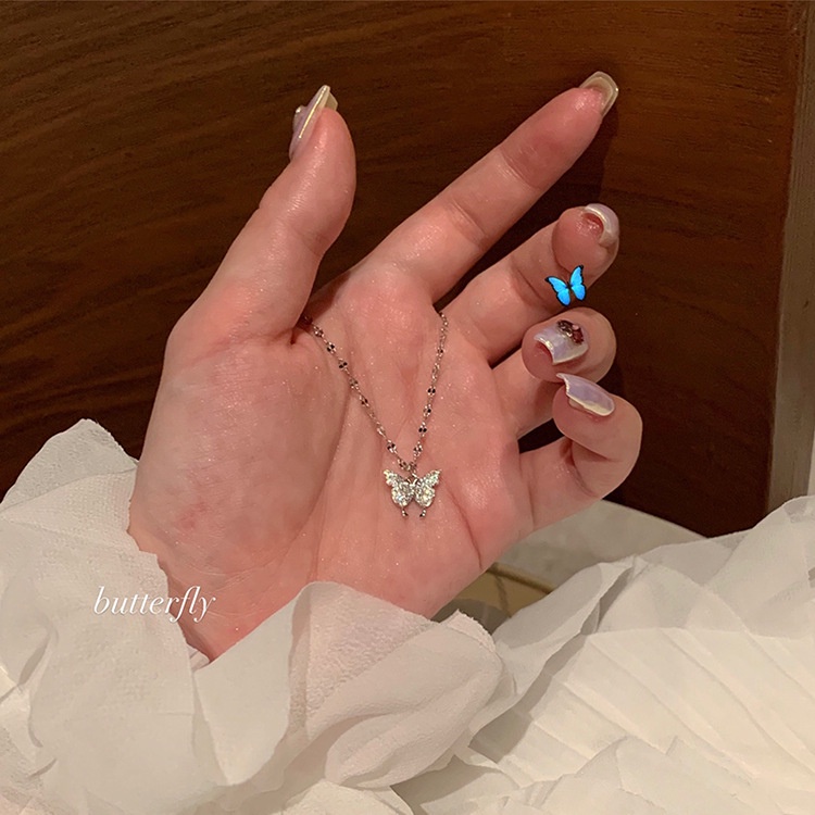 สร้อยคอ จี้ผีเสื้อ ประดับเพชร เครื่องประดับแฟชั่น สําหรับผู้หญิง