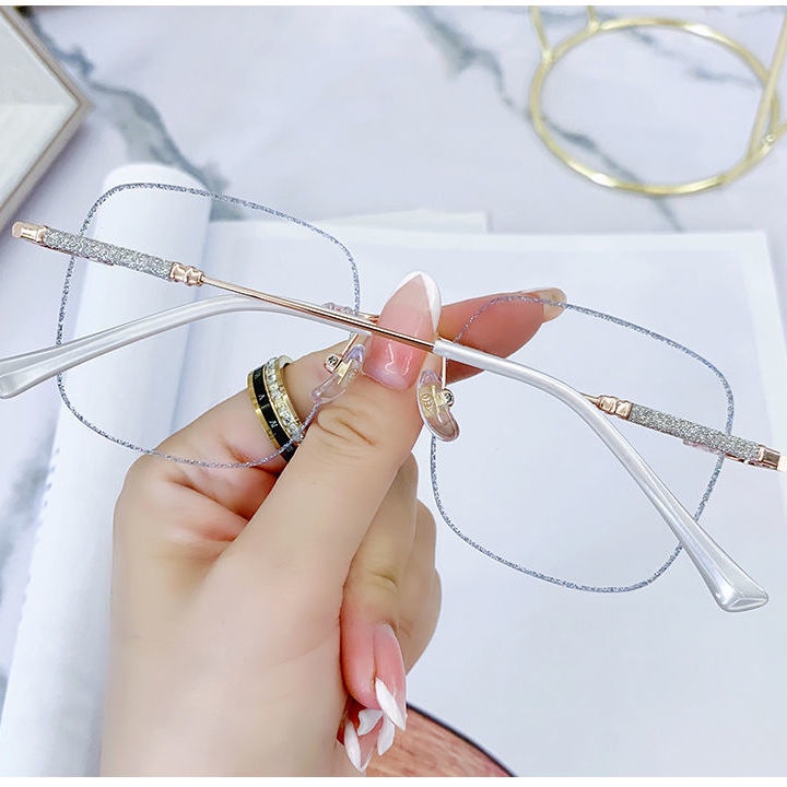 แว่นตาป้องกันแสงสีฟ้า กรอบใหญ่ กลิตเตอร์ สําหรับสตรี-0 °-500 ° (จุดสินค้า)