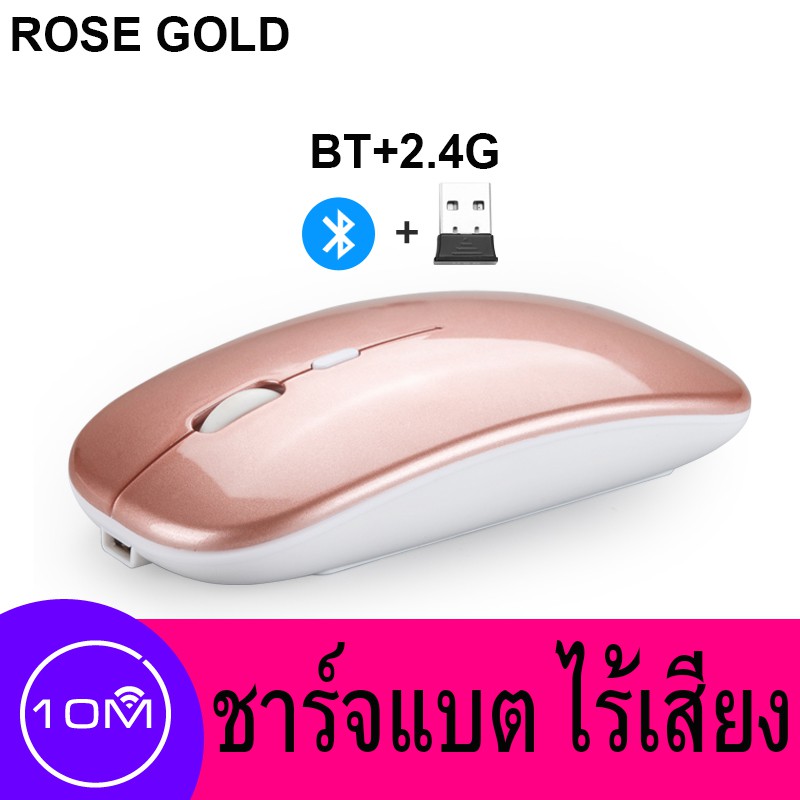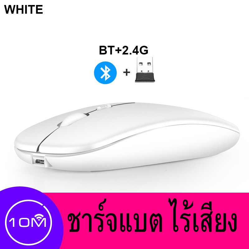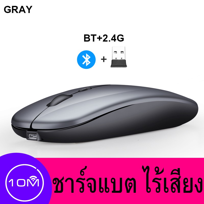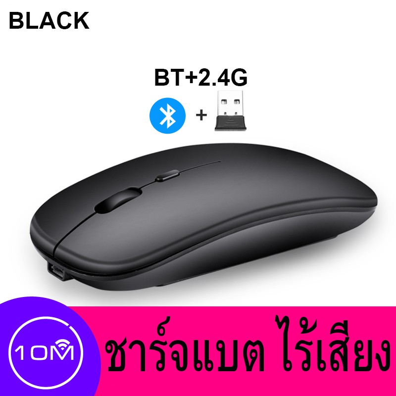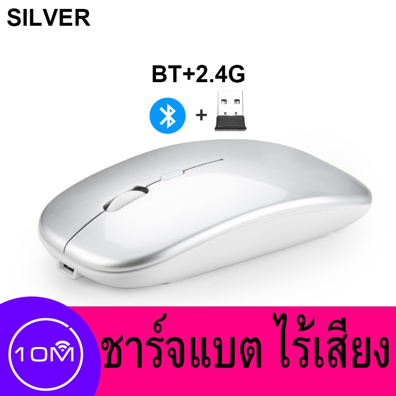 เมาส์ไร้สาย มีแบตในตัว ไร้เสียง (มีปุ่มปรับความไวเมาส์ DPI 1000-1600) Optical Rechargeable Wireless Mouse บลูทูธ