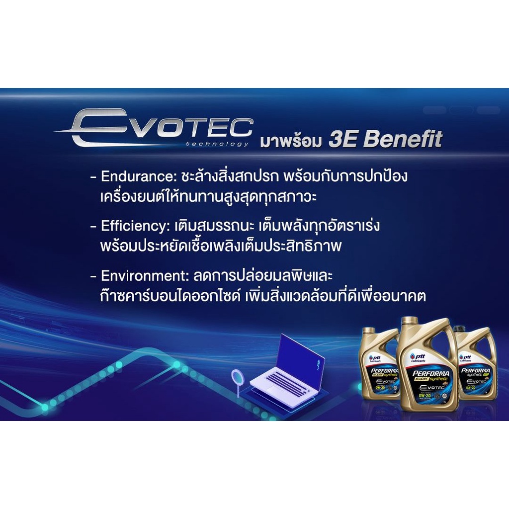 น้ำมันเครื่อง ปตท เบนซิน PTT EVOTEC PERFORMA SYNTHETIC ECO CAR 0W20 (3L)