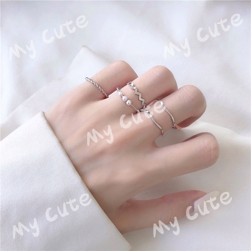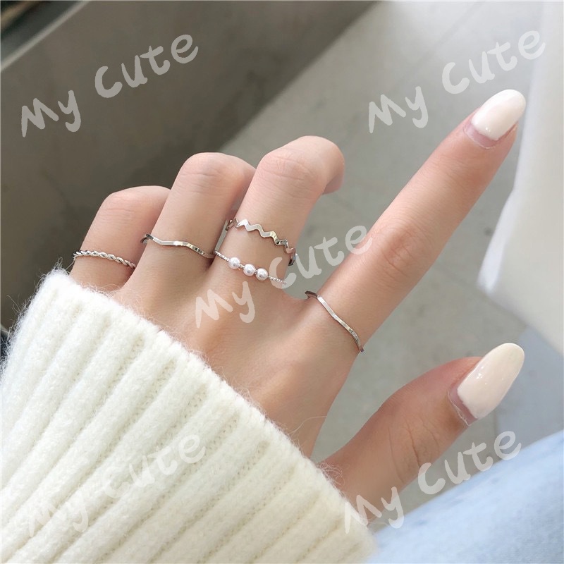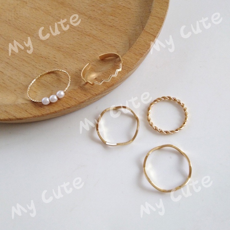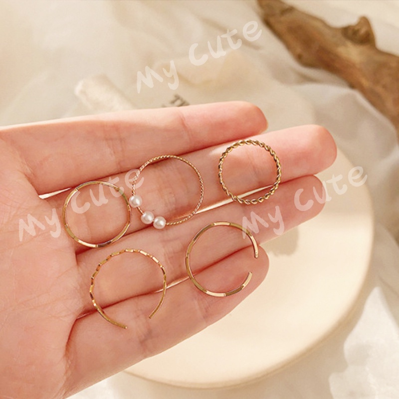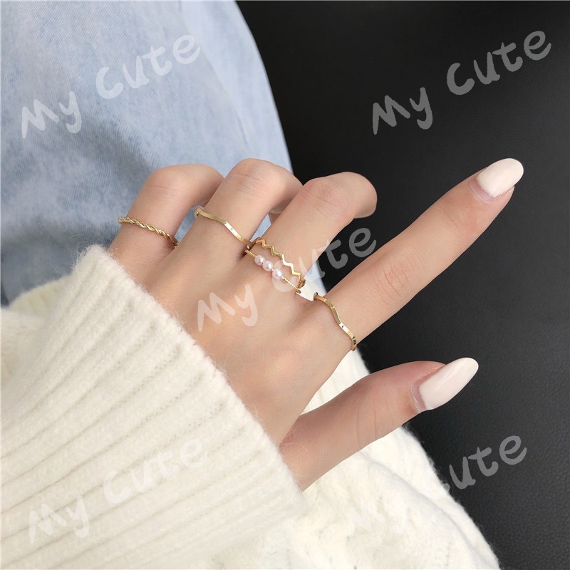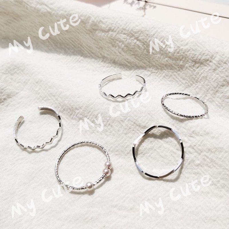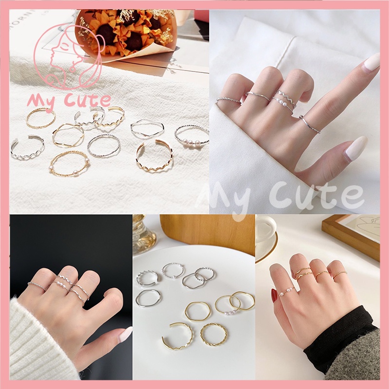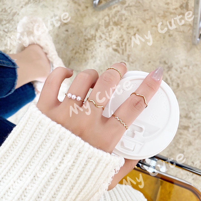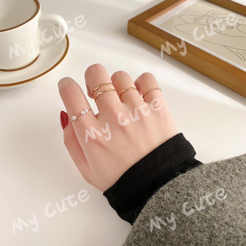 My Cute ชุดเครื่องประดับ แหวนโลหะ แหวน ประดับมุก แฟชั่น สไตล์เกาหลี สําหรับผู้หญิง