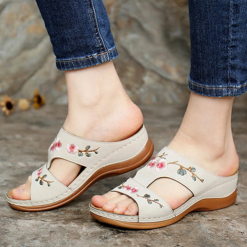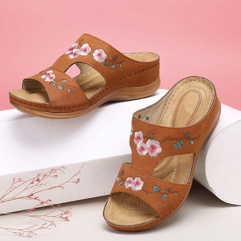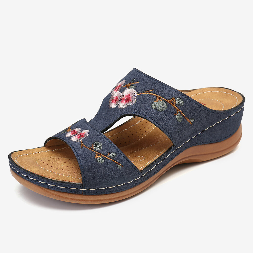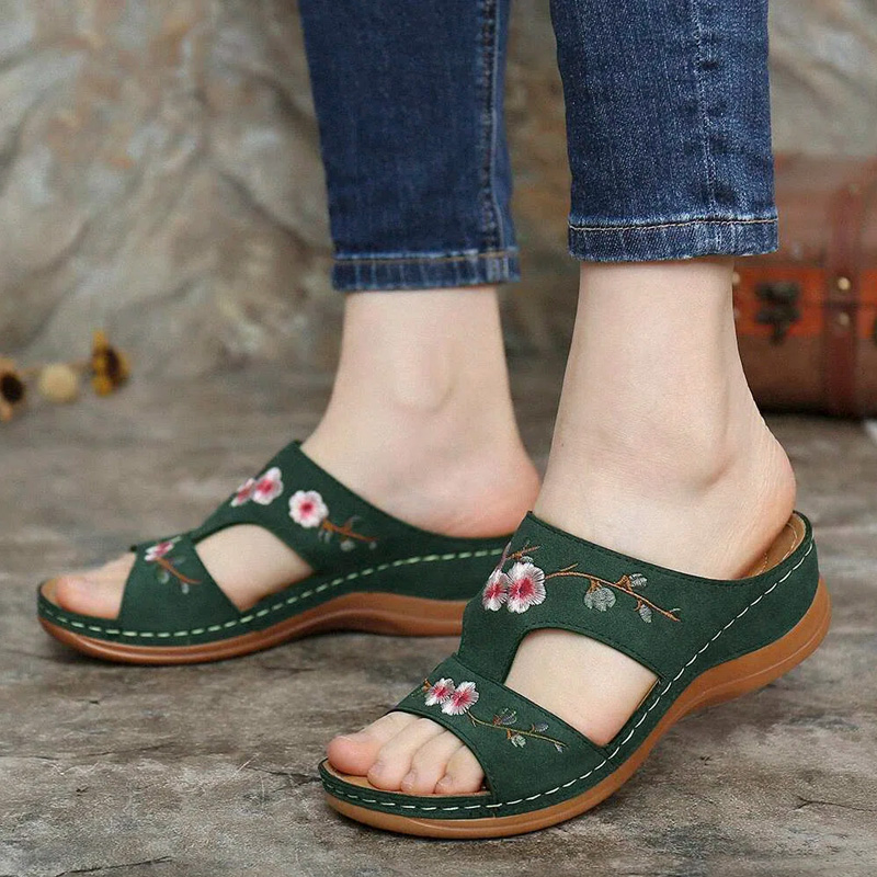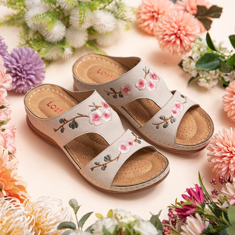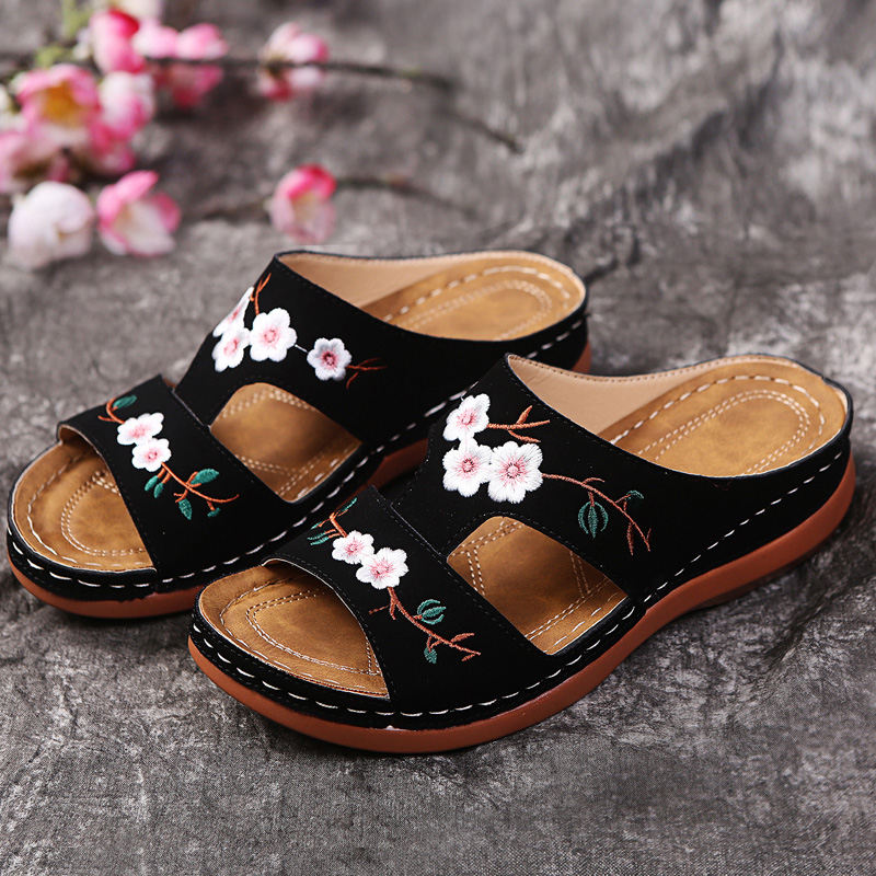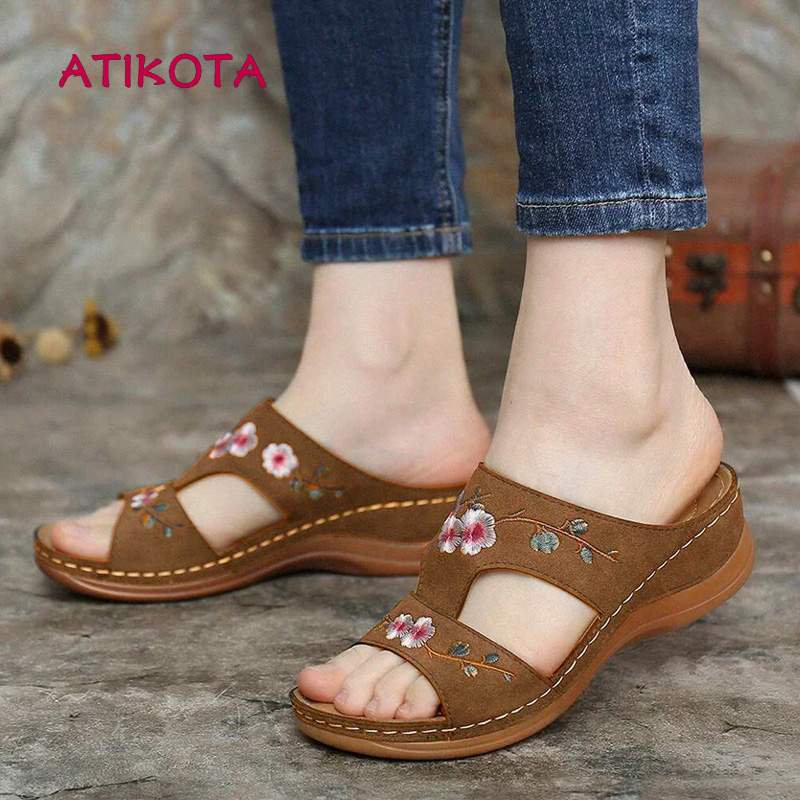 Atikota รองเท้าแตะ พื้นทรงหนา พิมพ์ลายดอกไม้ สไตล์วินเทจ สําหรับผู้หญิง