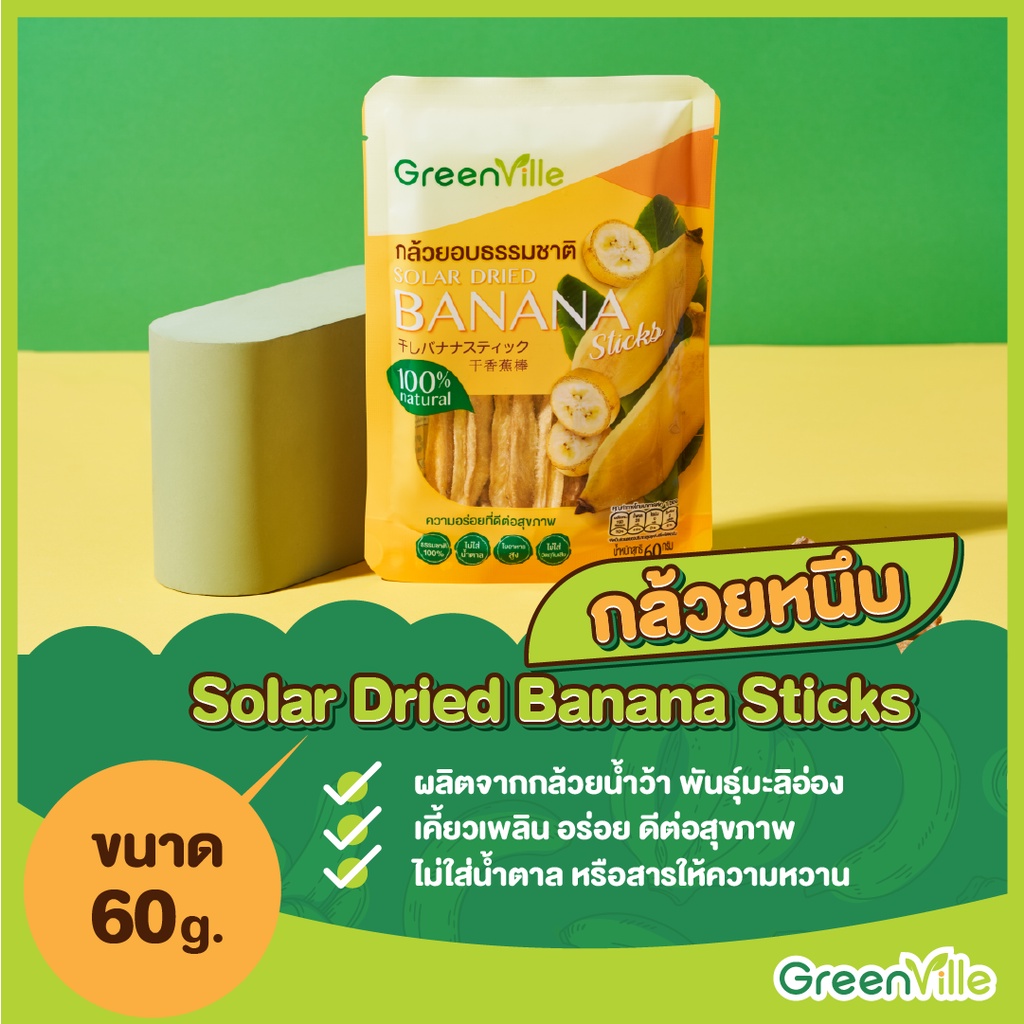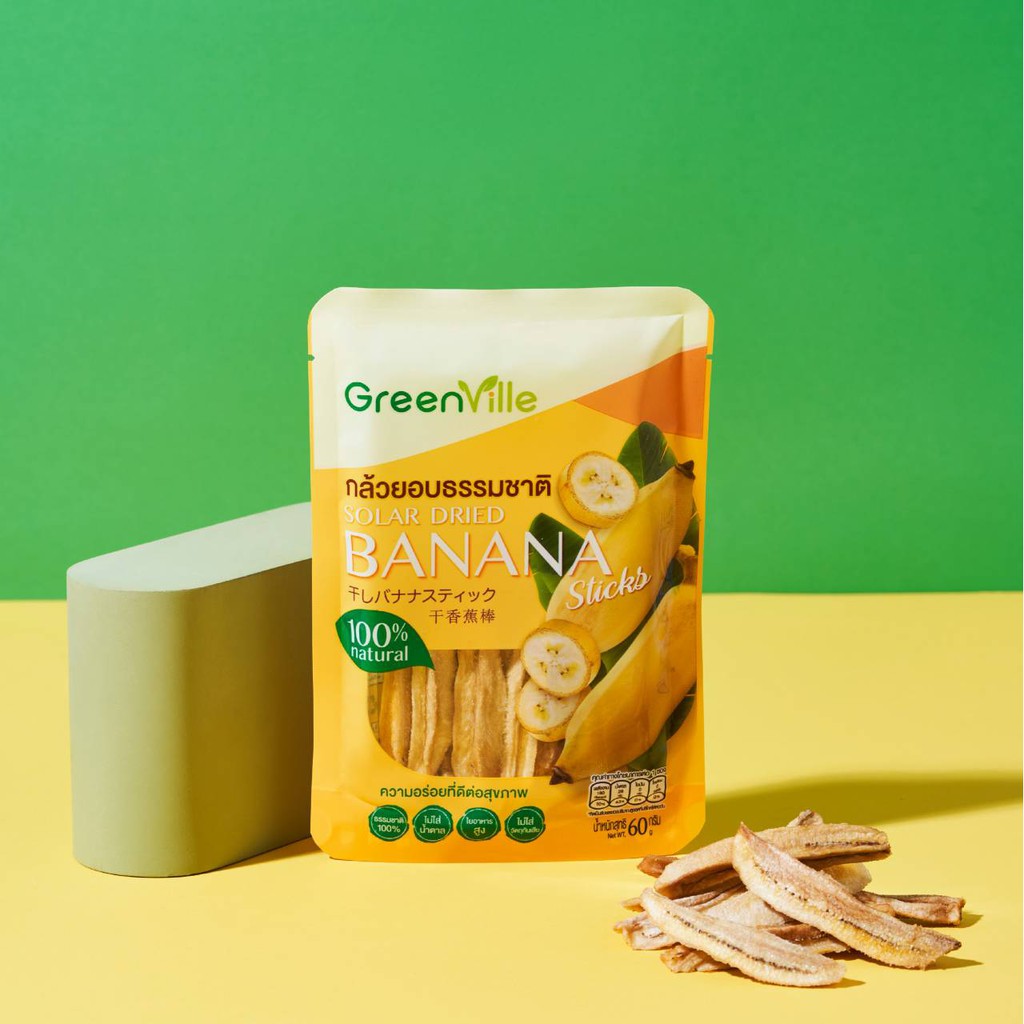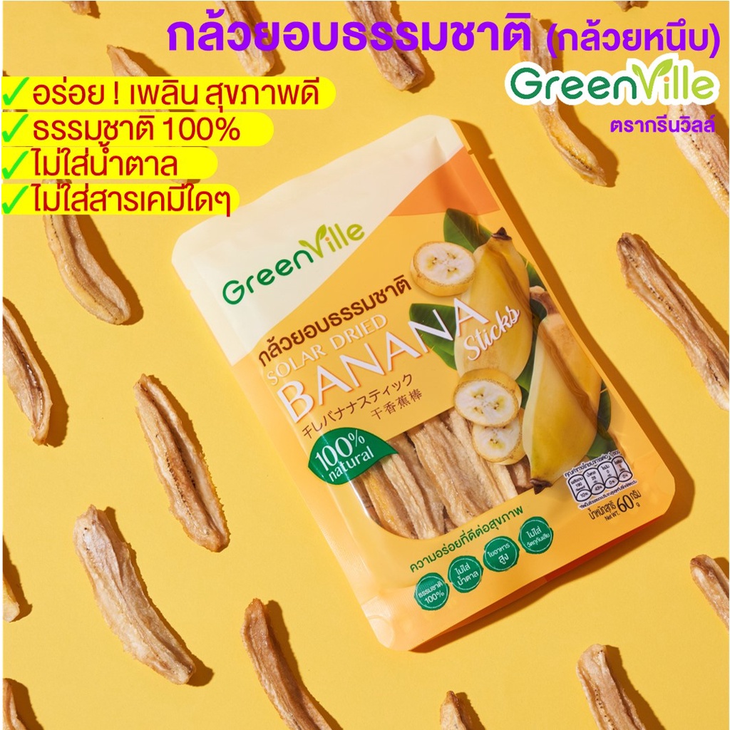 กล้วยหนึบ ตรากรีนวิลล์ GreenVille กล้วยน้ำว้าอบ ธรรมชาติ100% ขนมสุขภาพ ขนมคลีน Vegan