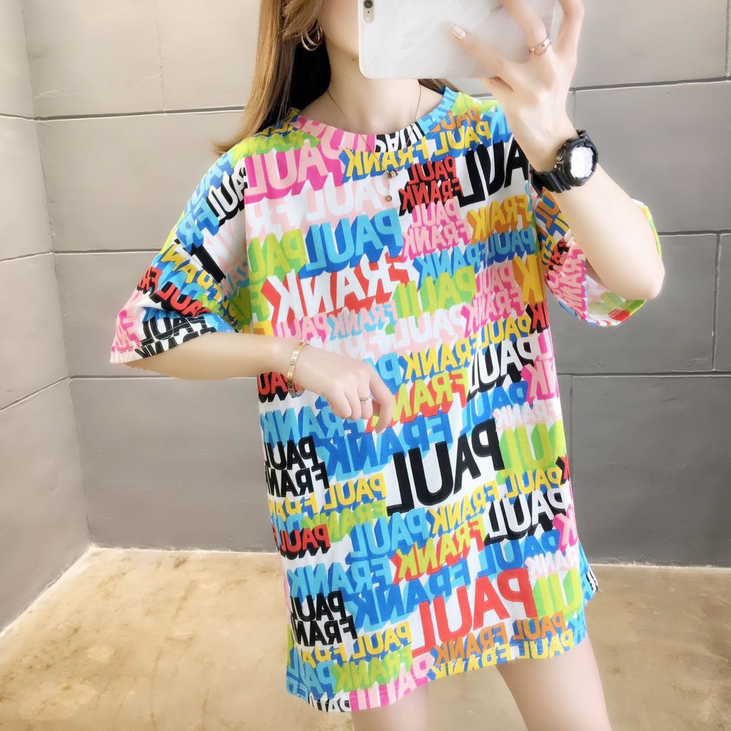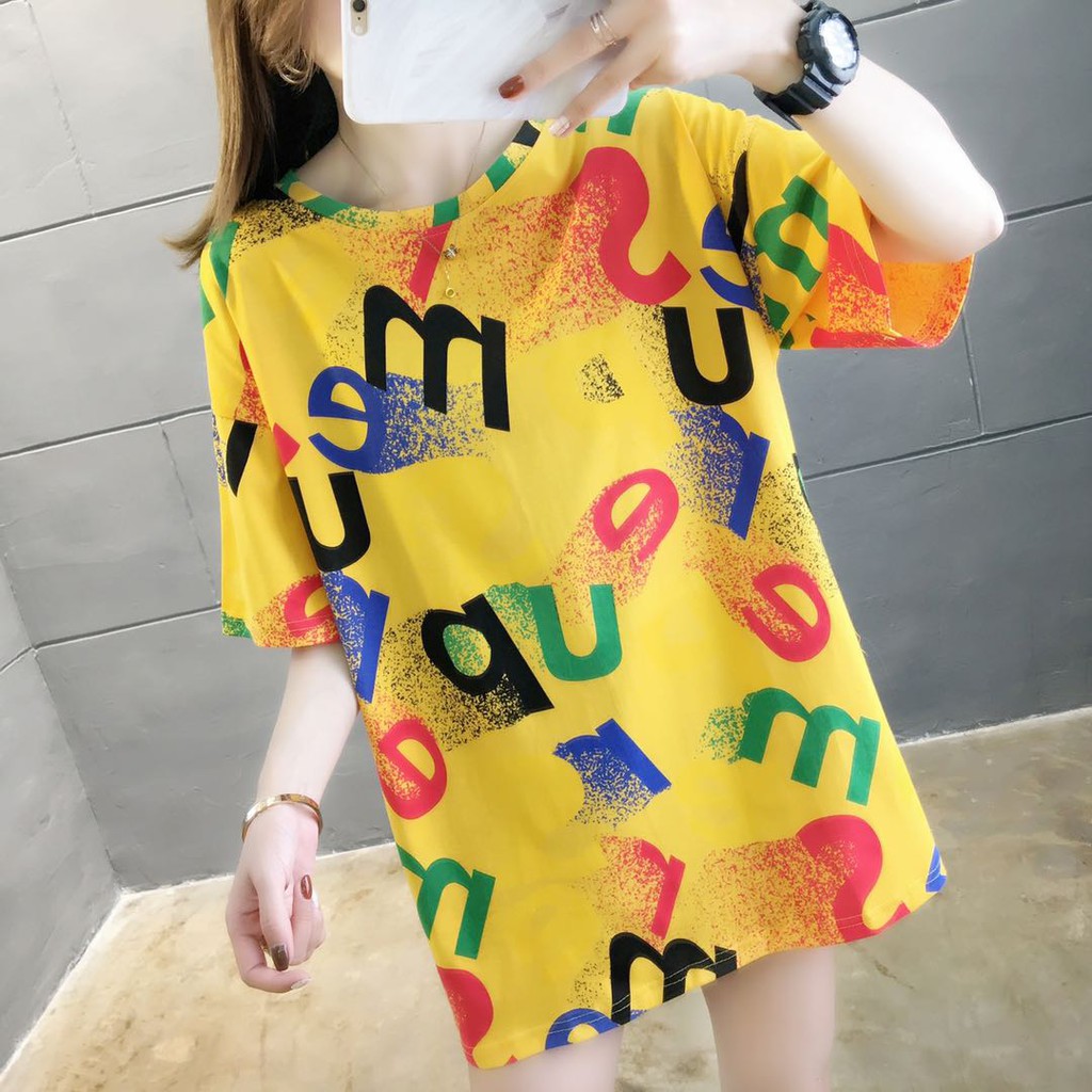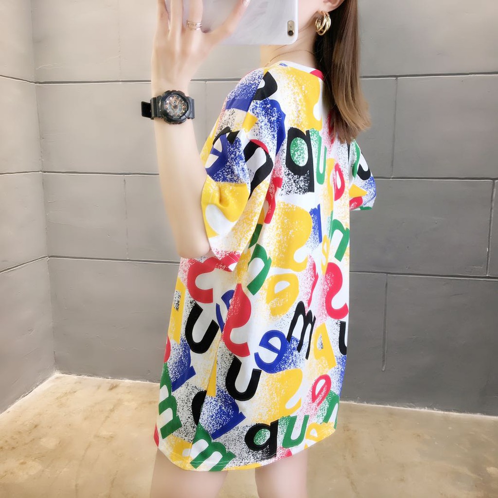 2020 รูปแบบใหม่ แฟชั่นผู้หญิงเสื้อยืดทีเชิตคอกลมแขนสั้น ผ้านุ่มใส่สบาย พิมพ์ลายน่ารัก เสื้อตัวยาว#3377/ 3379
