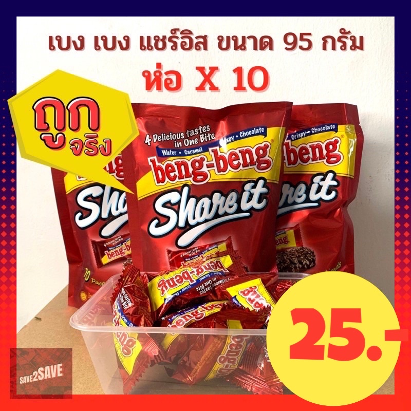🔥ล๊อตใหมม่ 🔥Beng Beng share It เบง เบง แชร์ อิท เวเฟอร์สอดไส้ครีม เคลือบคาราเมล ช็อคโกแลตและข้าวพอง (บรรจุ 10 ซอง)