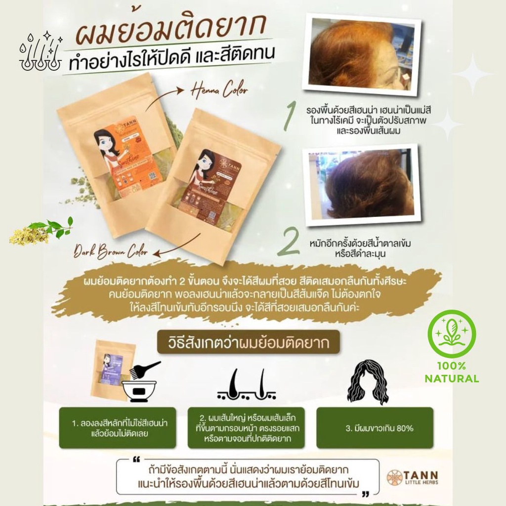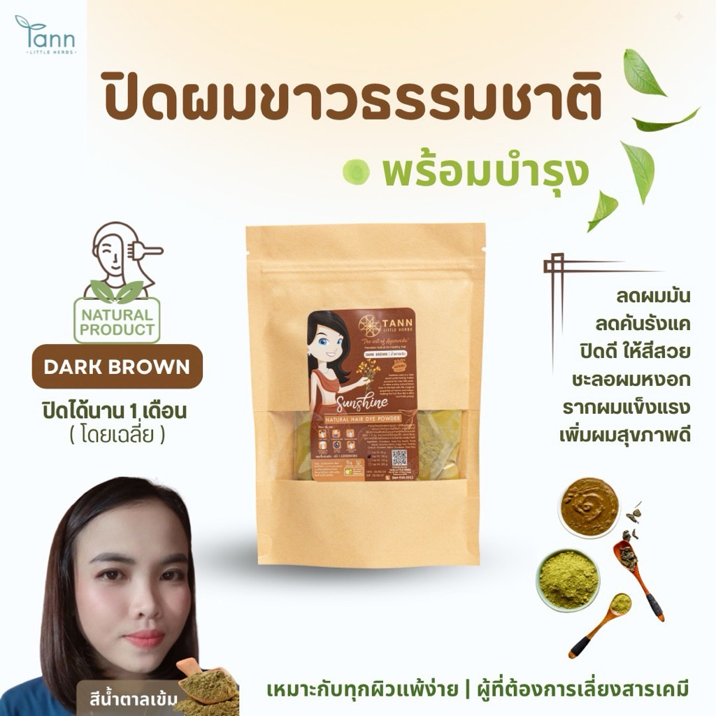 TANN ตาณผงพืชย้อมผมสีน้ำตาลเข้ม (Dark Brown) จากธรรมชาติ เคมี 0% สำหรับผิวแพ้ง่าย ปิดสนิท ให้สีสวย