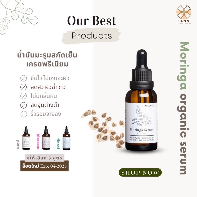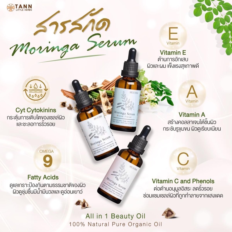 TANN ตาณเซรั่มมะรุมสกัดเย็น 30ml. คุณภาพดี อนุภาคเล็ก ซึมไว กลิ่นไม่หืน คืนผิวชุ่มชื้น ลดริ้วรอยดี