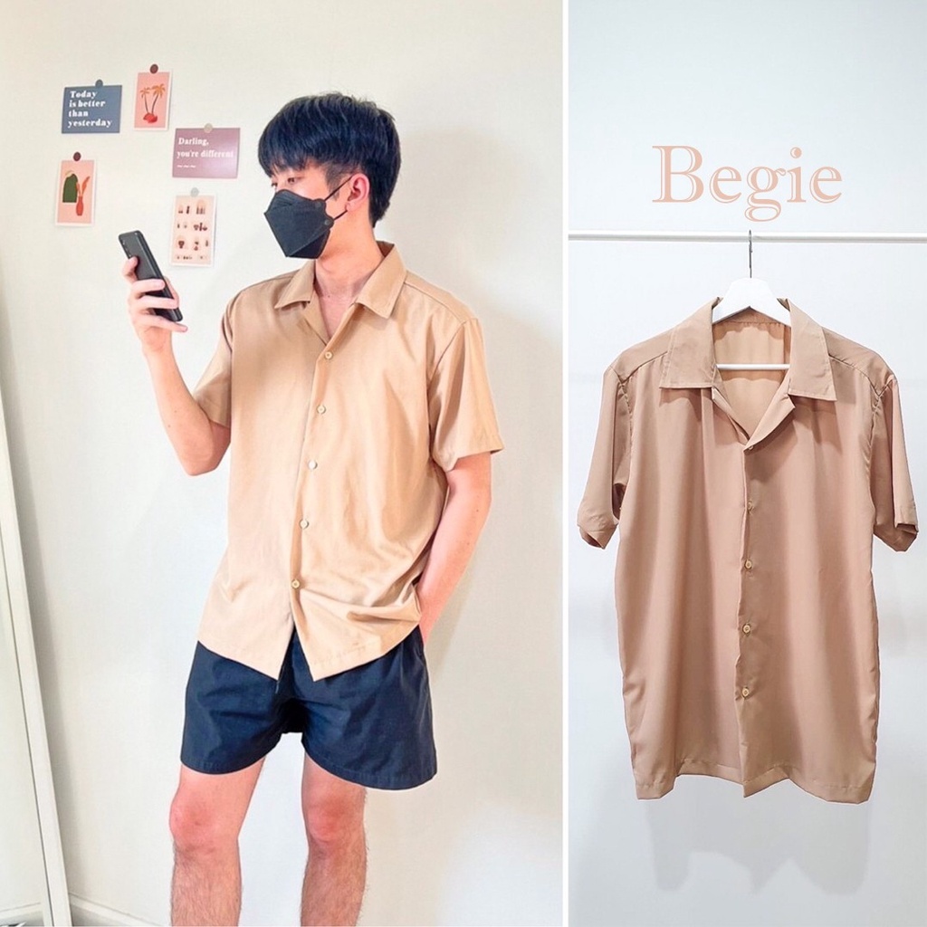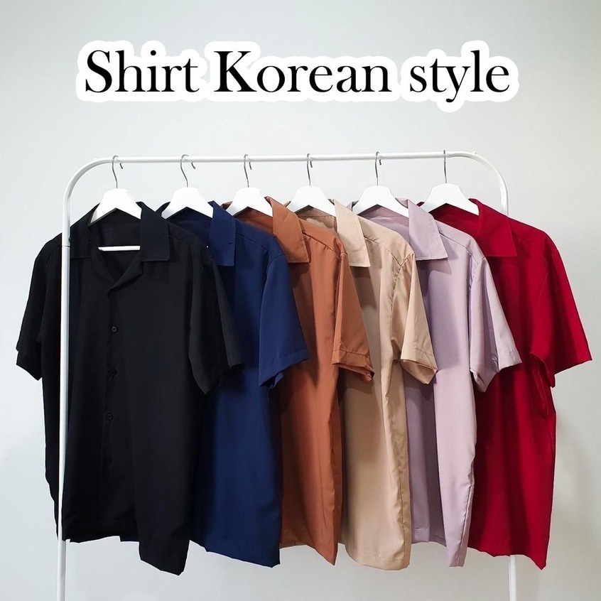 เสื้อเชิ้ตแขนสั้นสีพื้น ชาย / หญิง เสื้อเชิ้ตสไตล์เกาหลี