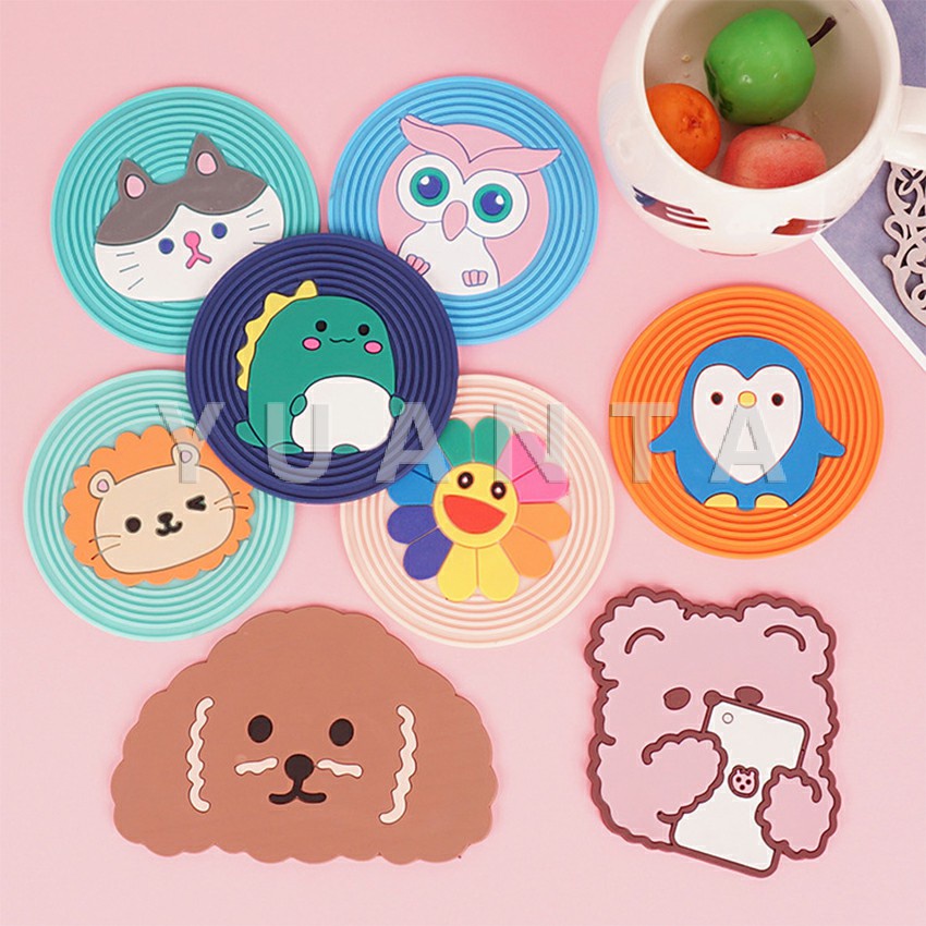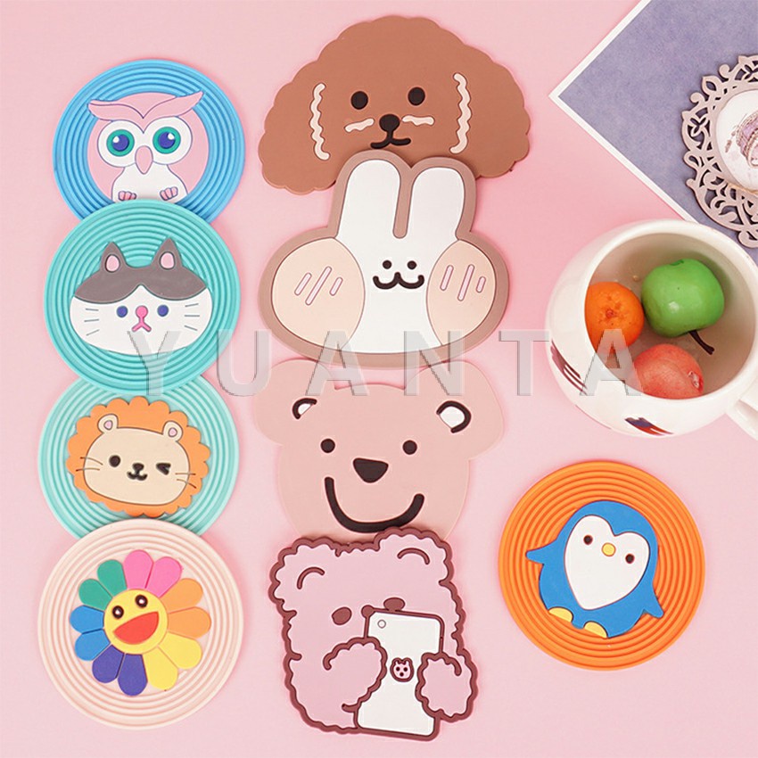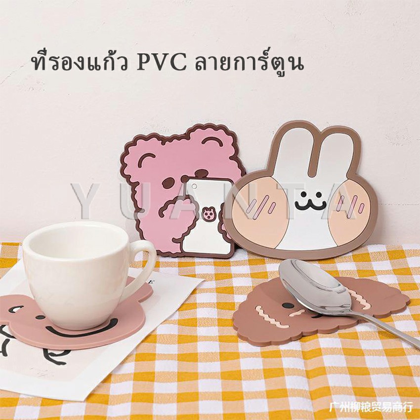 YUANTA ที่รองแก้ว PVC ลายการ์ตูน วัสดุกันลื่น ​ล้างได้ ทนความร้อน ที่รองแก้ว แผ่นรองจาน Cartoon PVC Coaster
