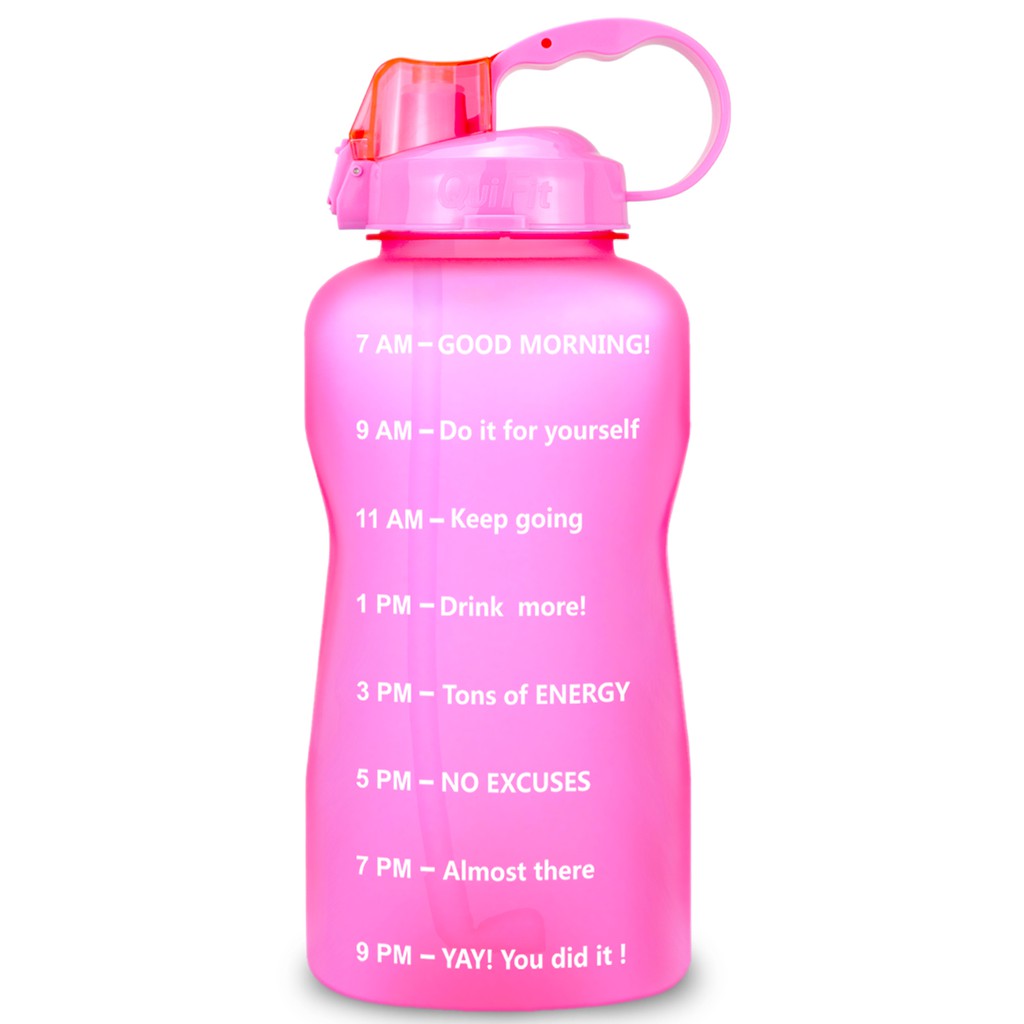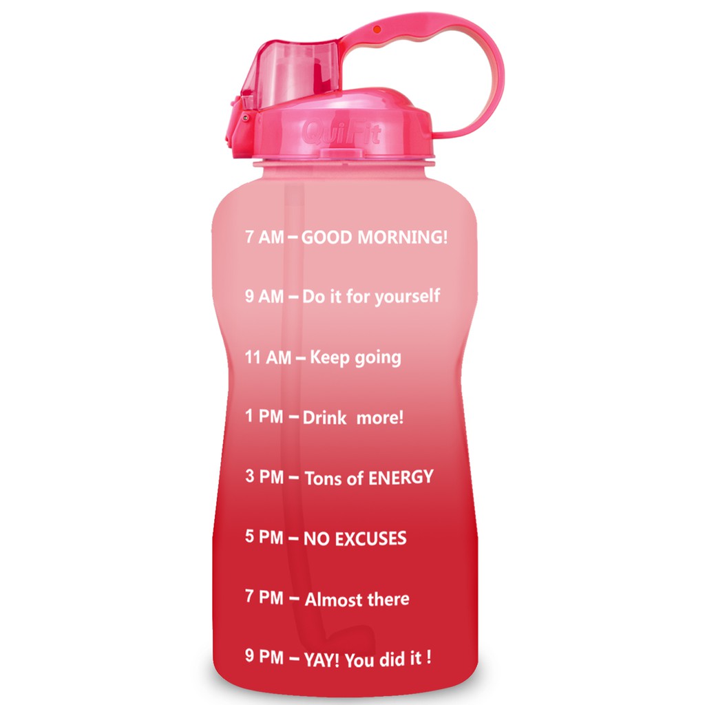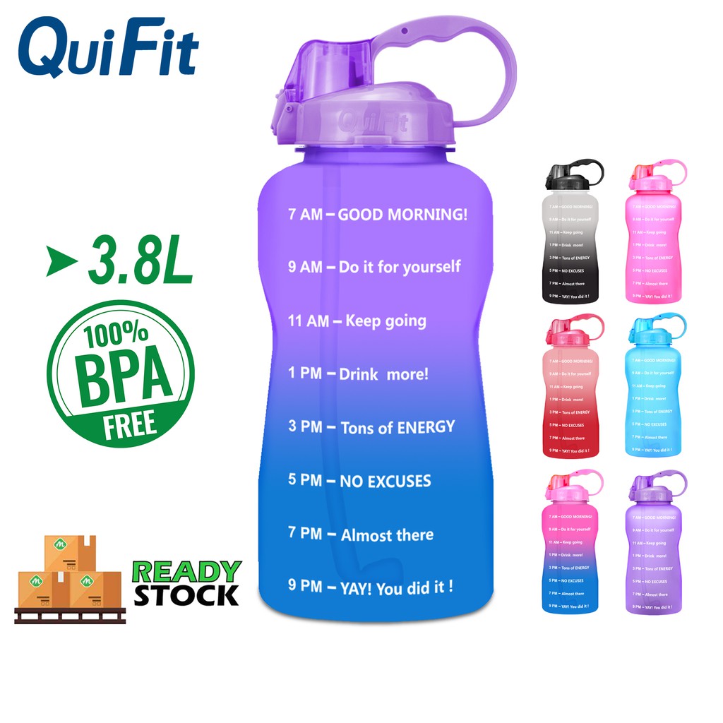 🔥ส่งไวจากไทย🔥QuiFit ขวดน้ําปากกว้าง 3.8L พร้อมหลอดดูดน้ําและเครื่องหมาย Bpa:Pink-A-Red