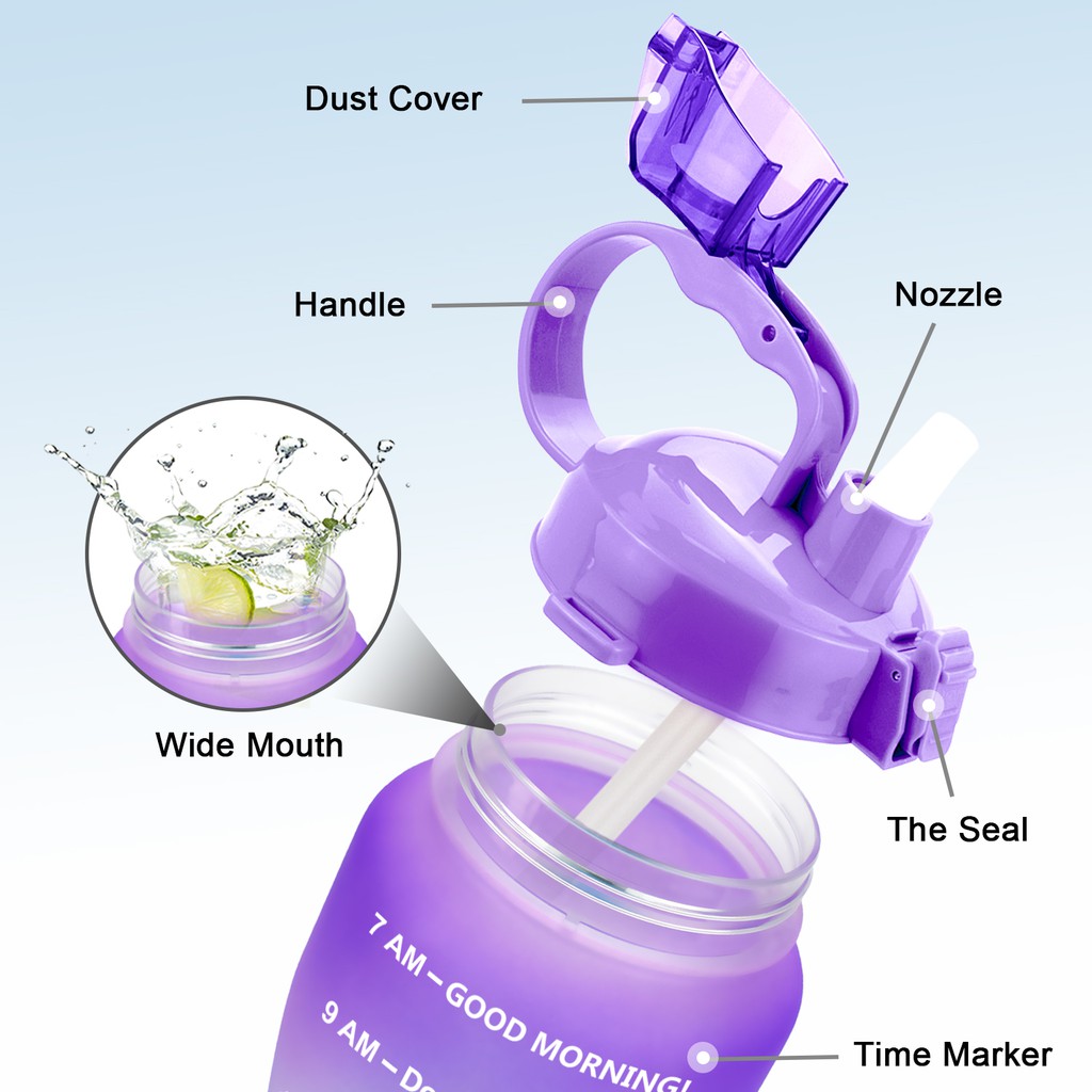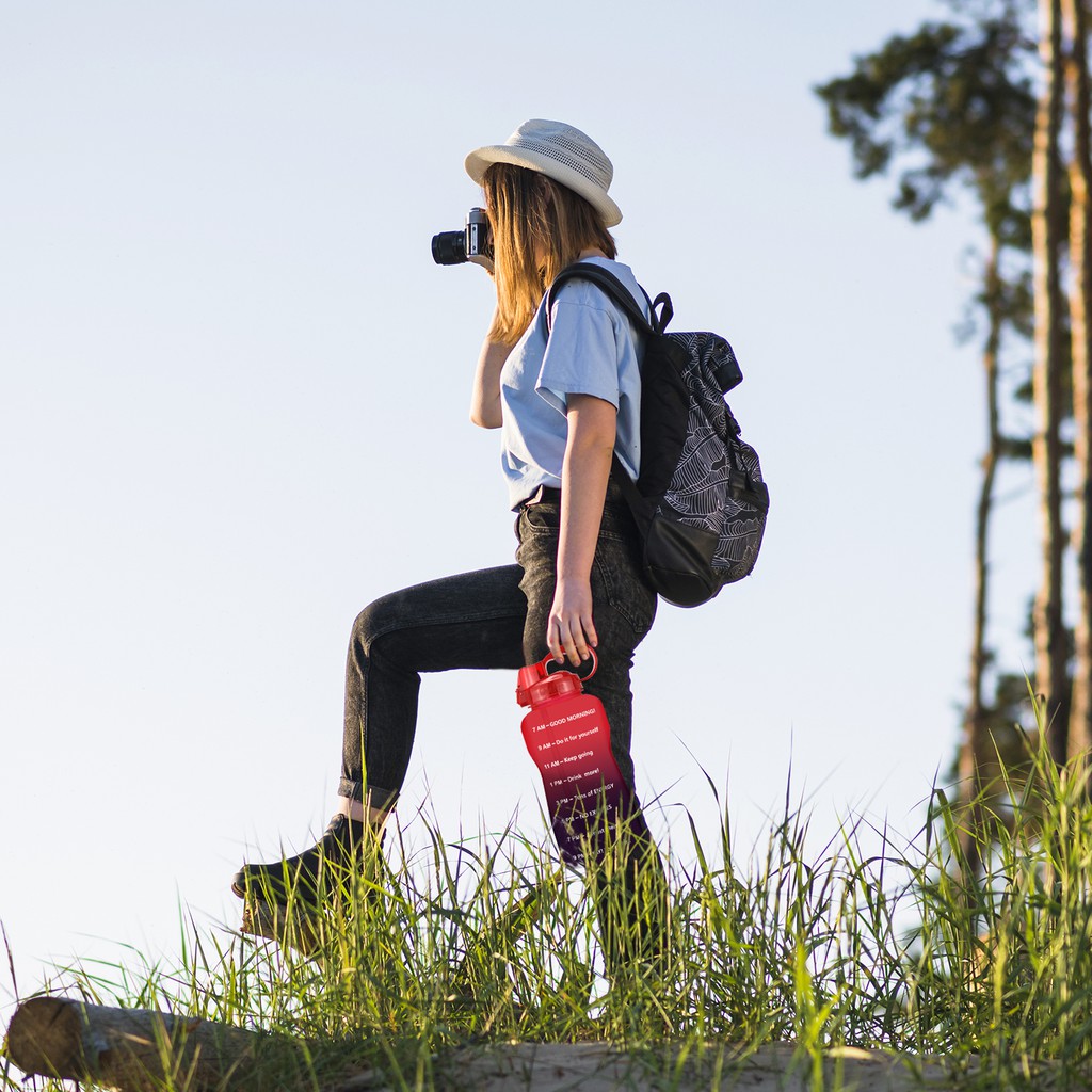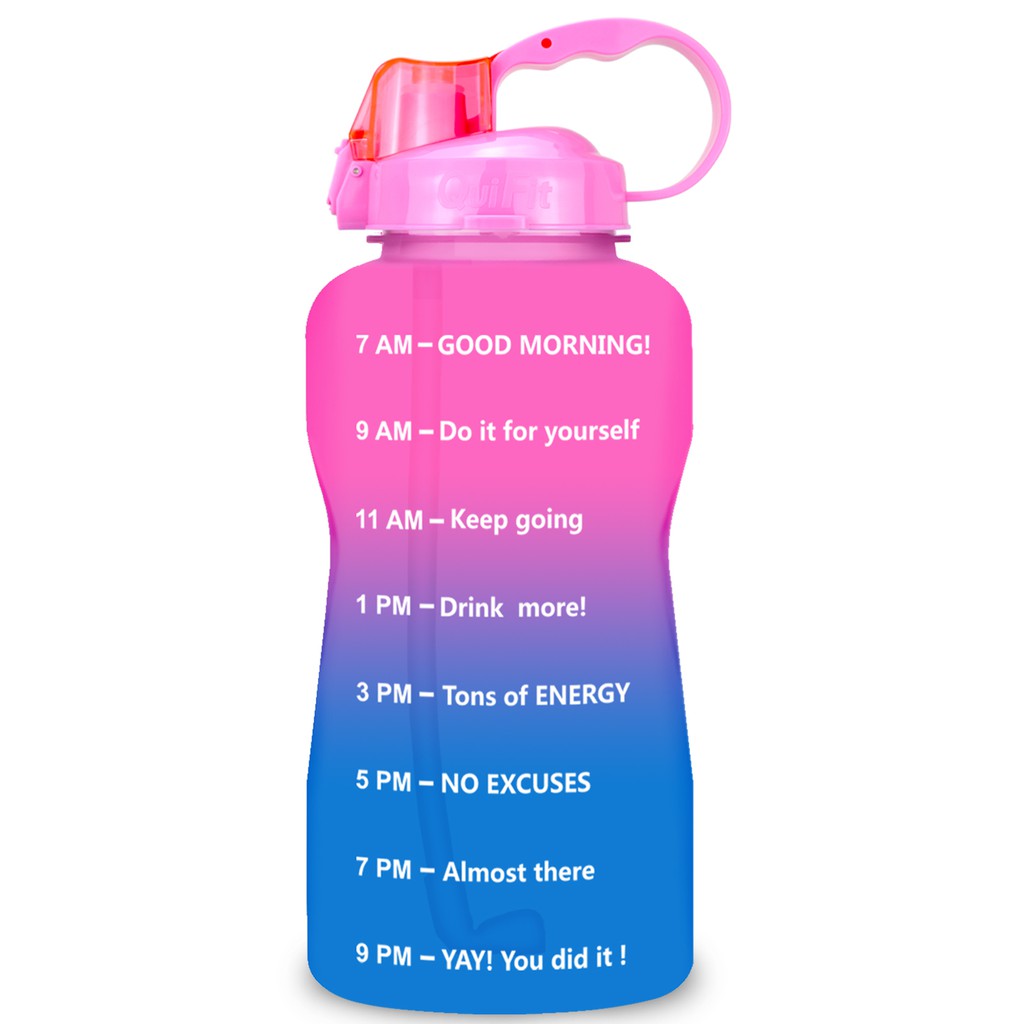 🔥ส่งไวจากไทย🔥QuiFit ขวดน้ําปากกว้าง 3.8L พร้อมหลอดดูดน้ําและเครื่องหมาย Bpa:Pink-A-Red