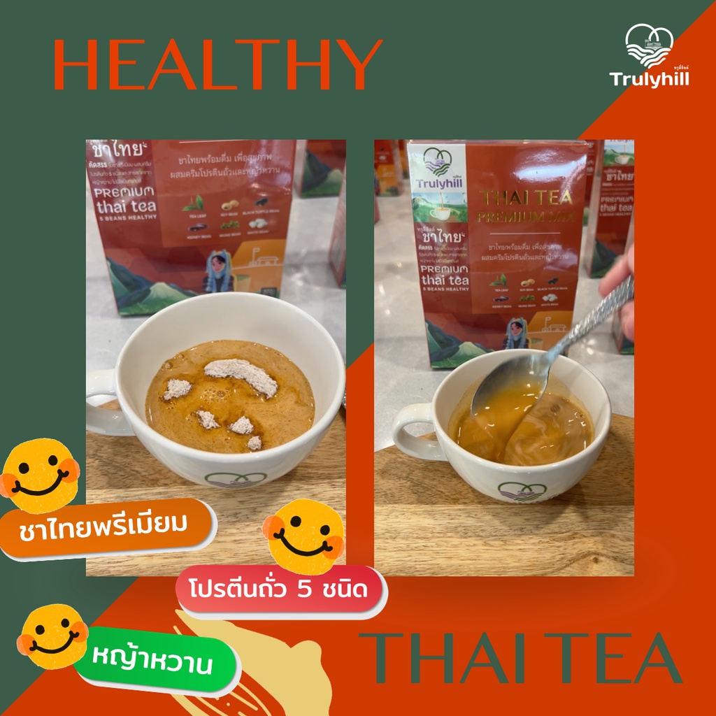[เจ] Trulyhill Thai Tea Mix ชาไทยพร้อมดื่ม เพื่อสุขภาพ ผสมโปรตีนถั่วและหญ้าหวาน (12 ซอง)