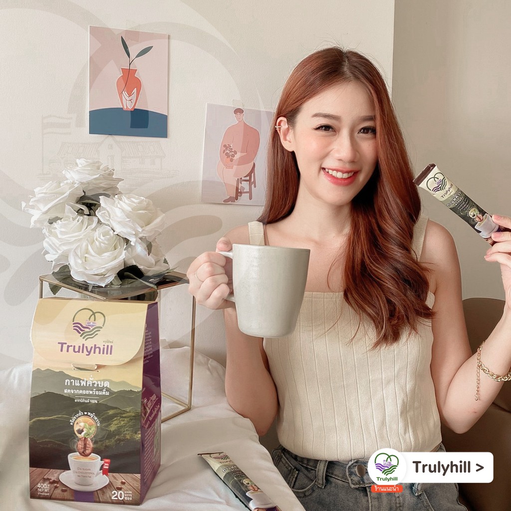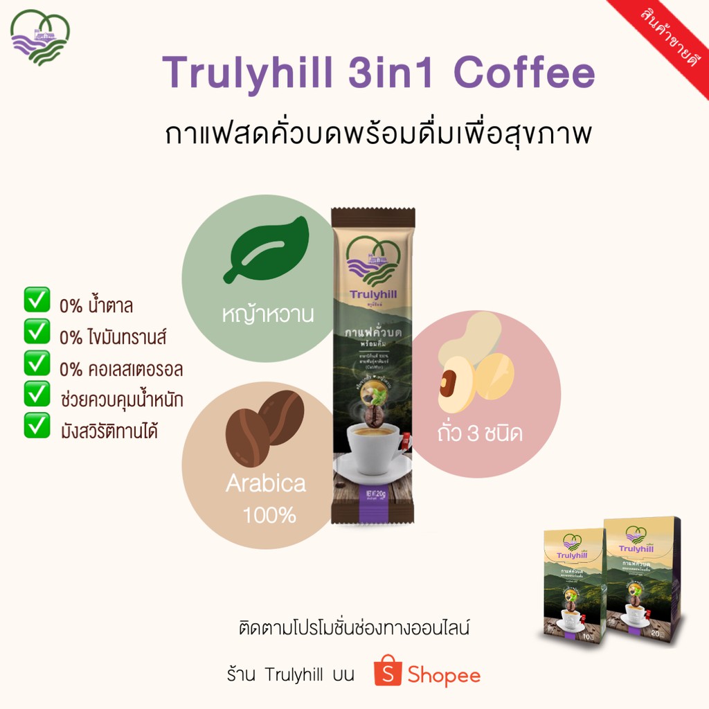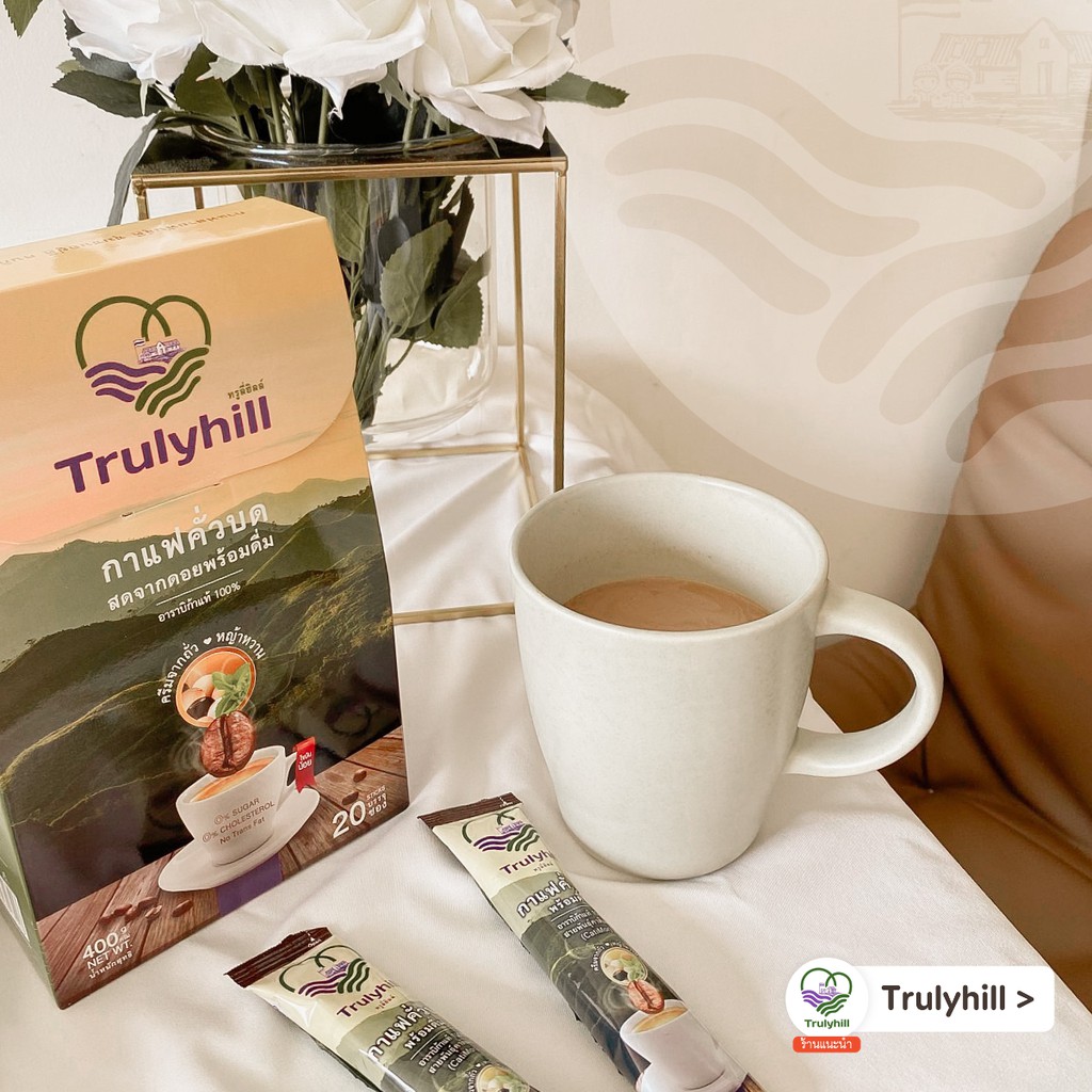 [เจ] Trulyhill 3in1 Coffee กาแฟอมก๋อยคั่วบดพร้อมดื่มเพื่อสุขภาพ - กล่องใหญ่ (20 ซอง)