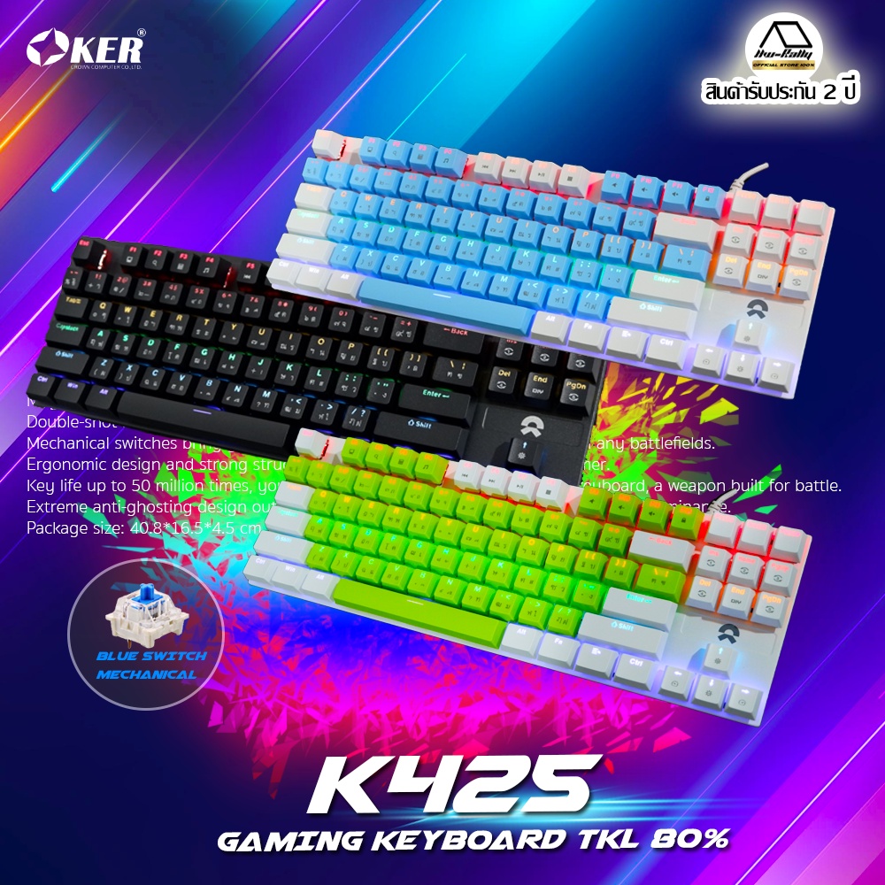 ⭐คีย์บอร์ดเล่นเกมส์⭐ Oker K425 คีย์บอร์ดTKL 80% Mechanical Gaming Keyboard Blue Switchของแท้‼️