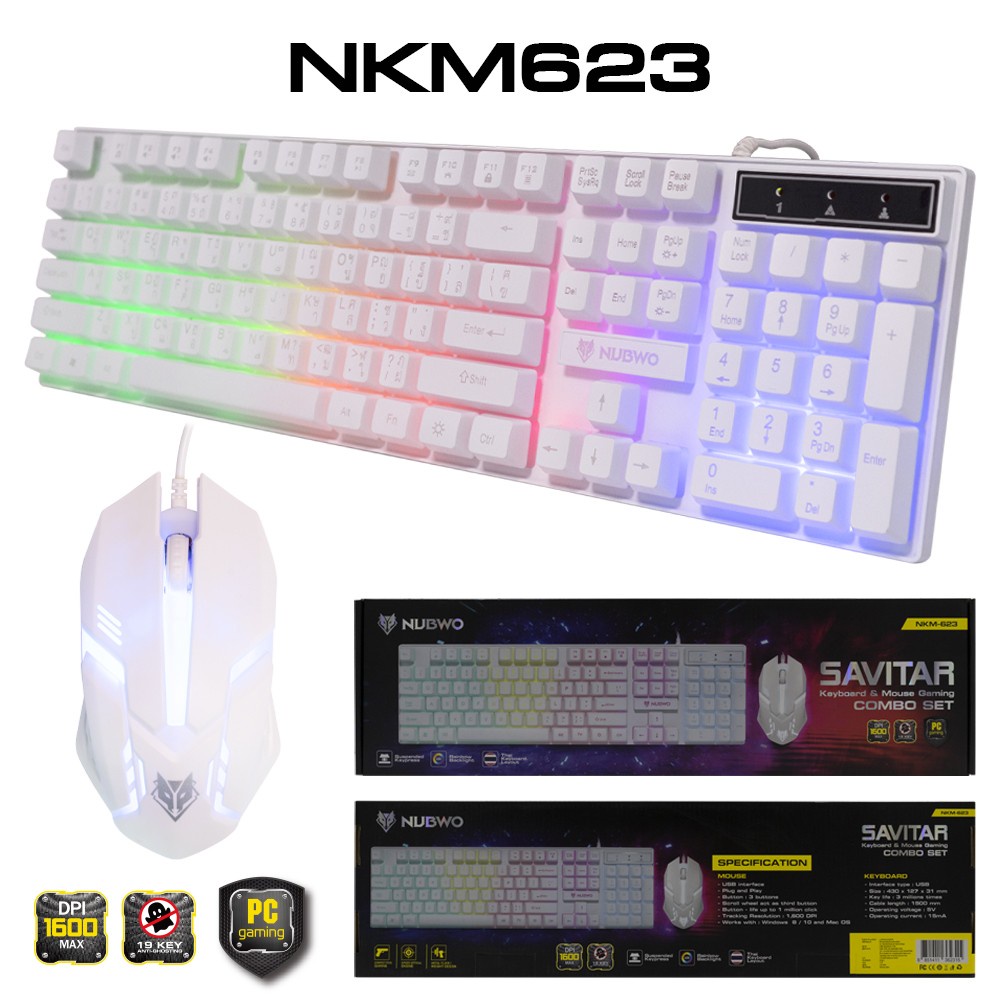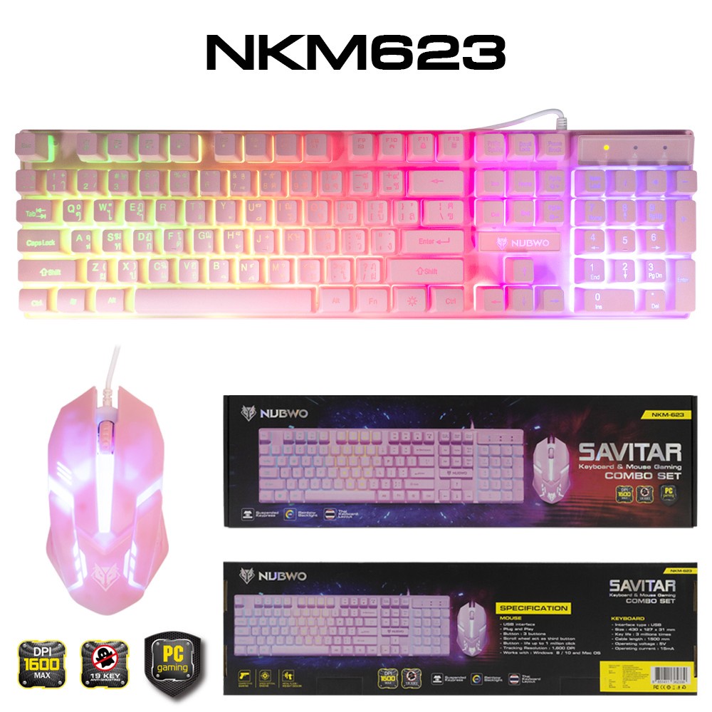 NUBWO คีย์บอร์ด เมาส์ ไฟทะลุอักษร SAVITAR NKM623 NKM-623 Set Keyboard+Mouse Combo