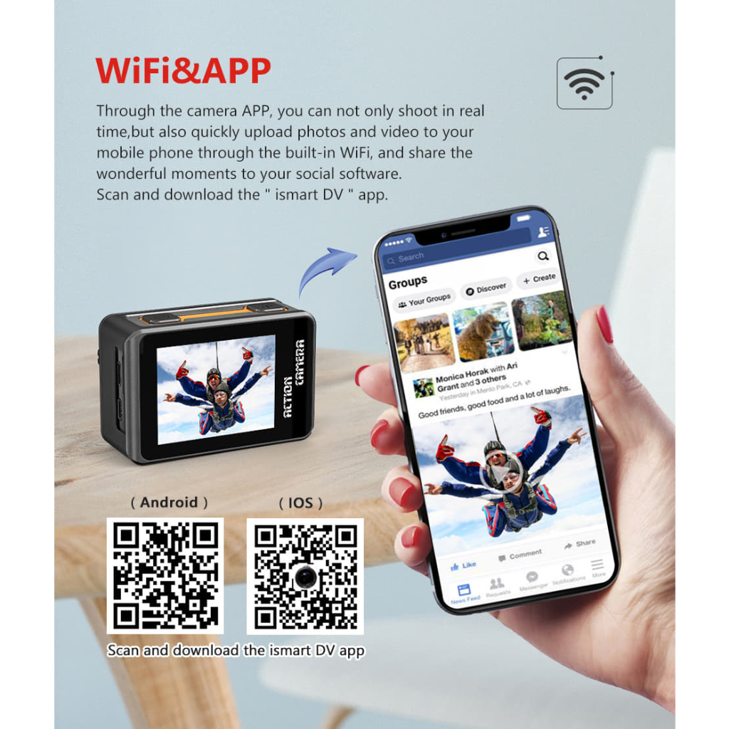 กล้องกันน้ำ ถ่ายใต้น้ำ ระบบสัมผัส 2 หน้าจอ พร้อมรีโมท ระบบกันสั่นครบ 4K Ultra HD waterproof WIFI - สีดำ 4K 60fps 24MP