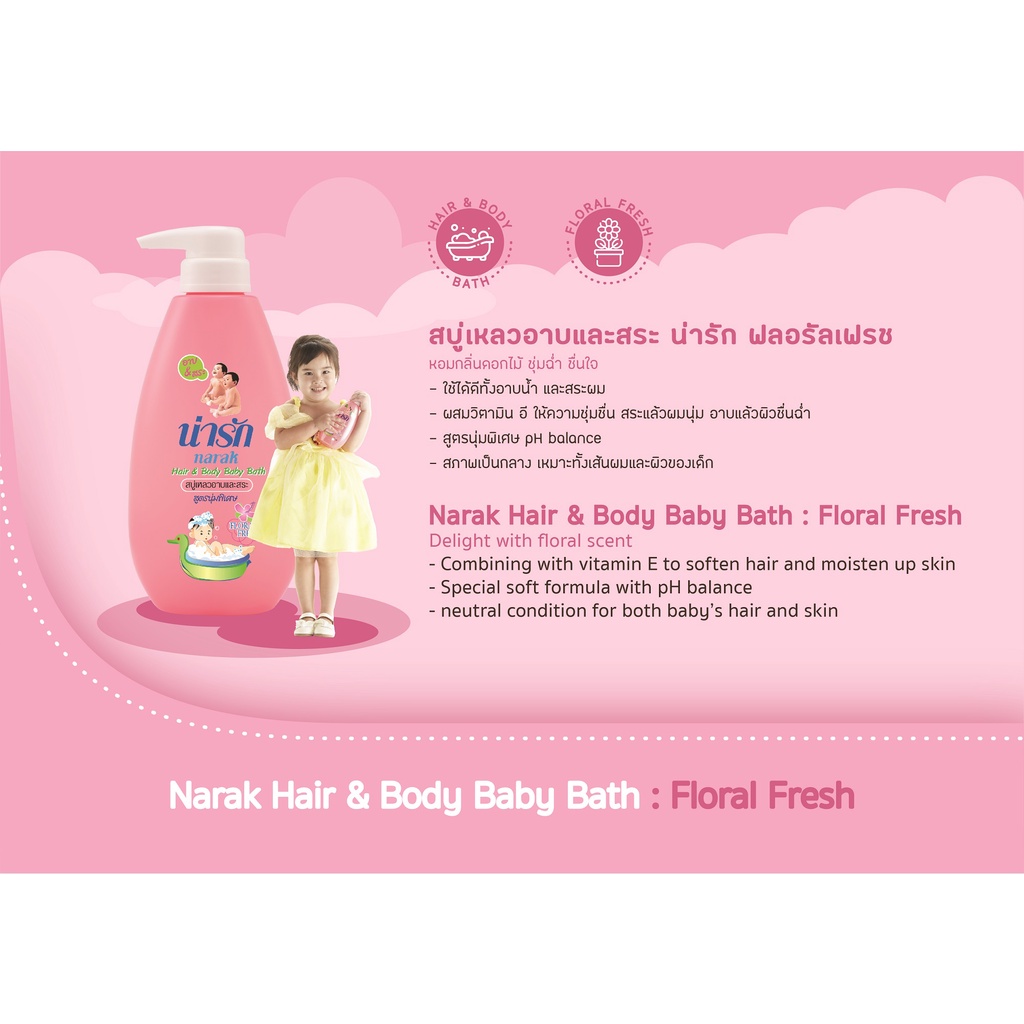 [1แถม1] Narak สบู่เหลวอาบและสระฟลอรัล เฟรช 456 มล. (สีชมพู)