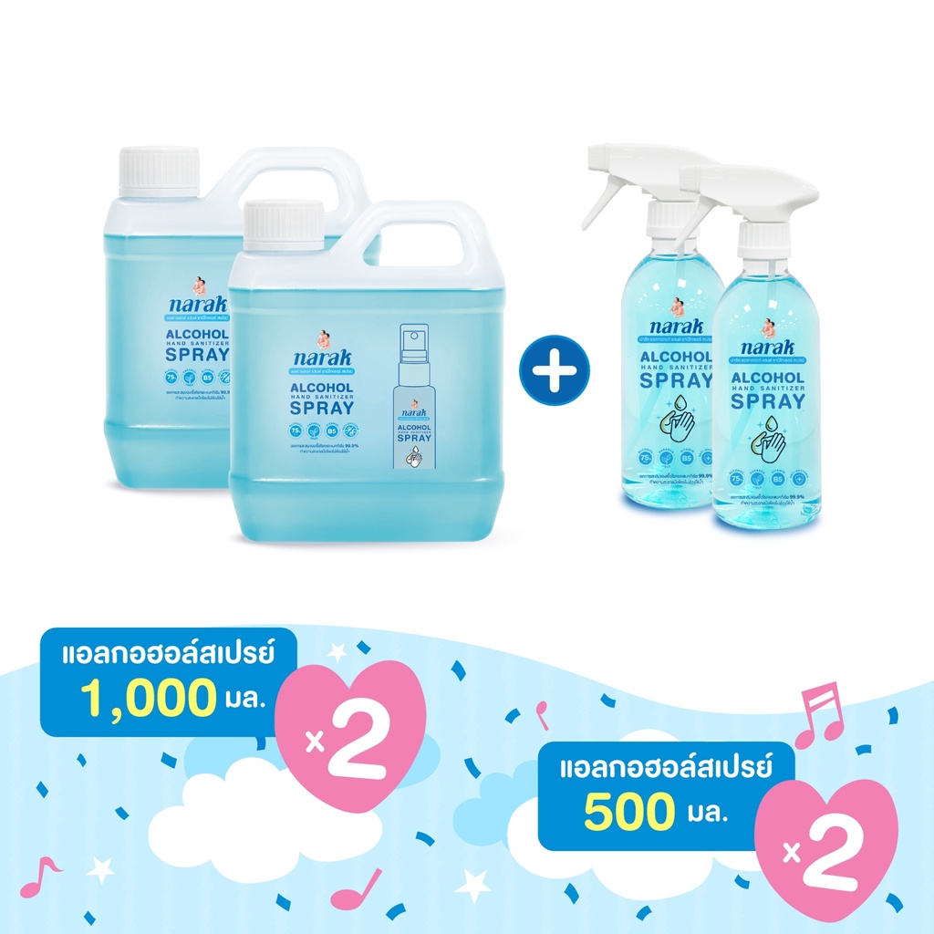 Narak น่ารักแอลกอฮอล์สเปรย์กลิ ่น Floral (สีฟ้าใส) ชนิดน้ำ 1000 มล. 2 ชิ้น + 500 มล. 2 ชิ้น
