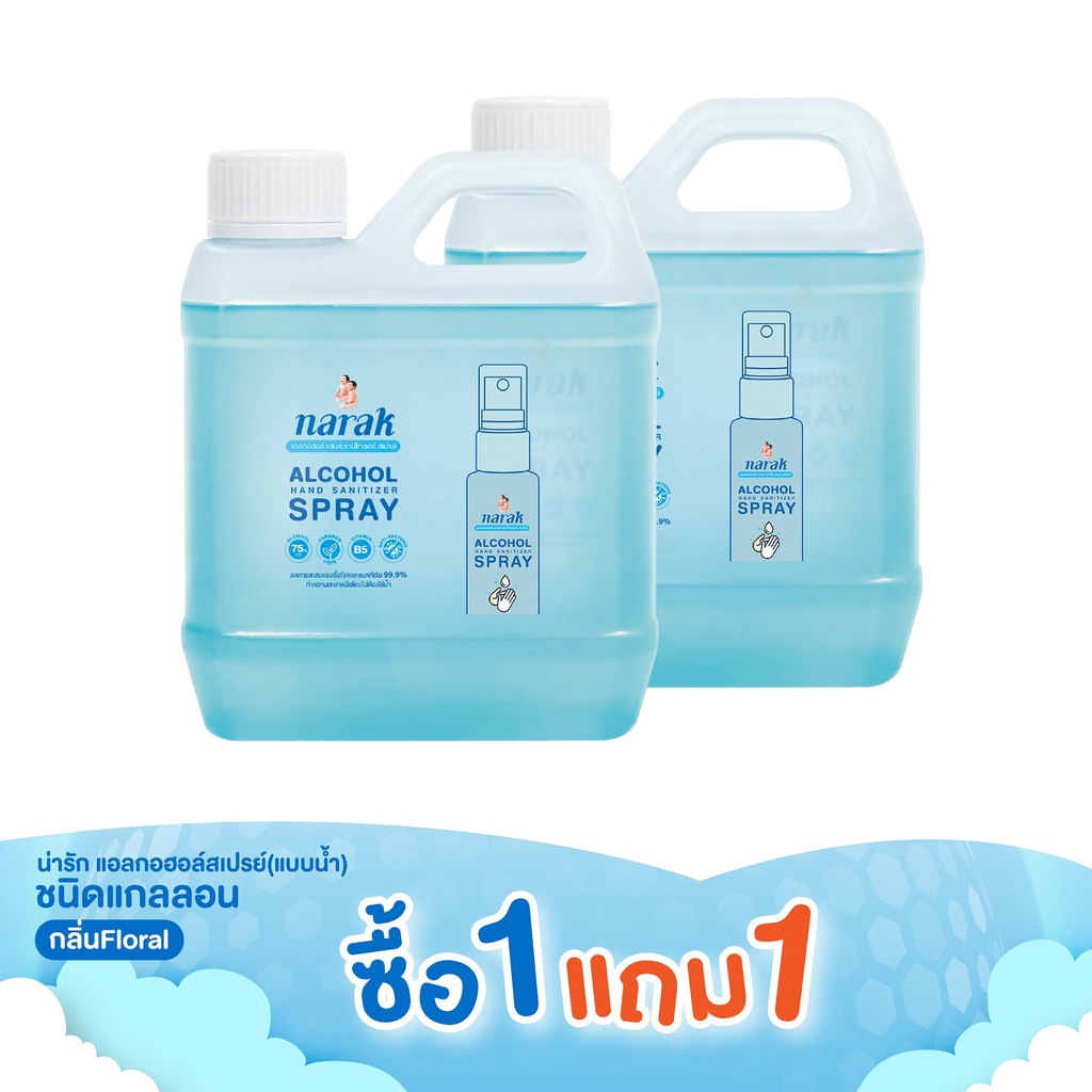 [1 แถม 1] Narak น่ารักแอลกอฮอล์สเปร ย์กลิ่น Floral (สีฟ้าใส) 1000 มล.