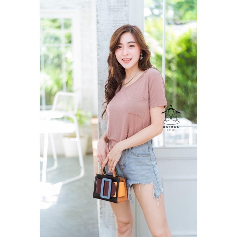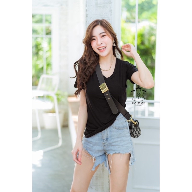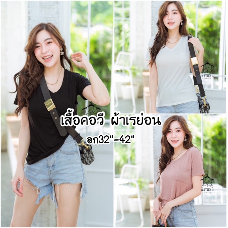 ❤️เสื้อคอวี ผ้าเรย่อน เสื้อยืดคอวี เสื้อยืดสีพื้น อก32"-42" ผ้านิ่มมาก มีกระเป๋าที่หน้าอก