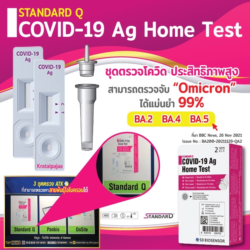 ชุดตร วจโควิด ATK Standard Q [หมดอายุ 2024] ไม้swabก้านสั้น/ก้านยาว ตรวจแม่นมีอย. BA.4 BA.5 COVID TEST