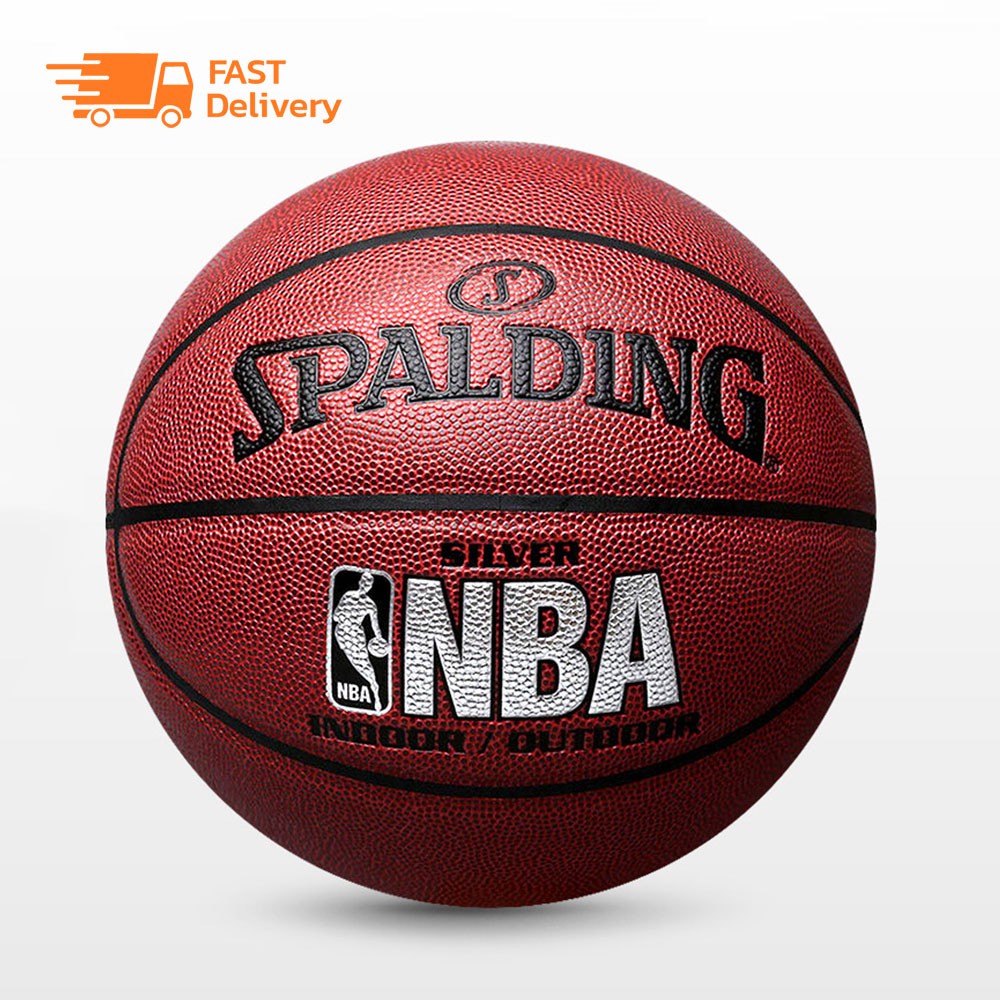 ลูกบาส ลูกบาสเกตบอล basketball Spalding Dura Grip NBA เบอร์7 มี 4สี ดำ ทอง เงิน ขาว ฟรี ตาข่ายใส่ลูกบาส+เข็มสูบ