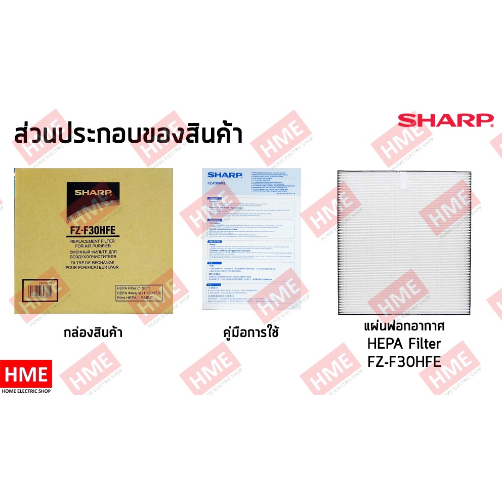 XIX-ของแท้ * แผ่นกรองอากาศ HEPA SHARP FZ-F30HFE ใช้กับรุ่น FP-F30TA ,FP-J30TA, FP-JM30B HME