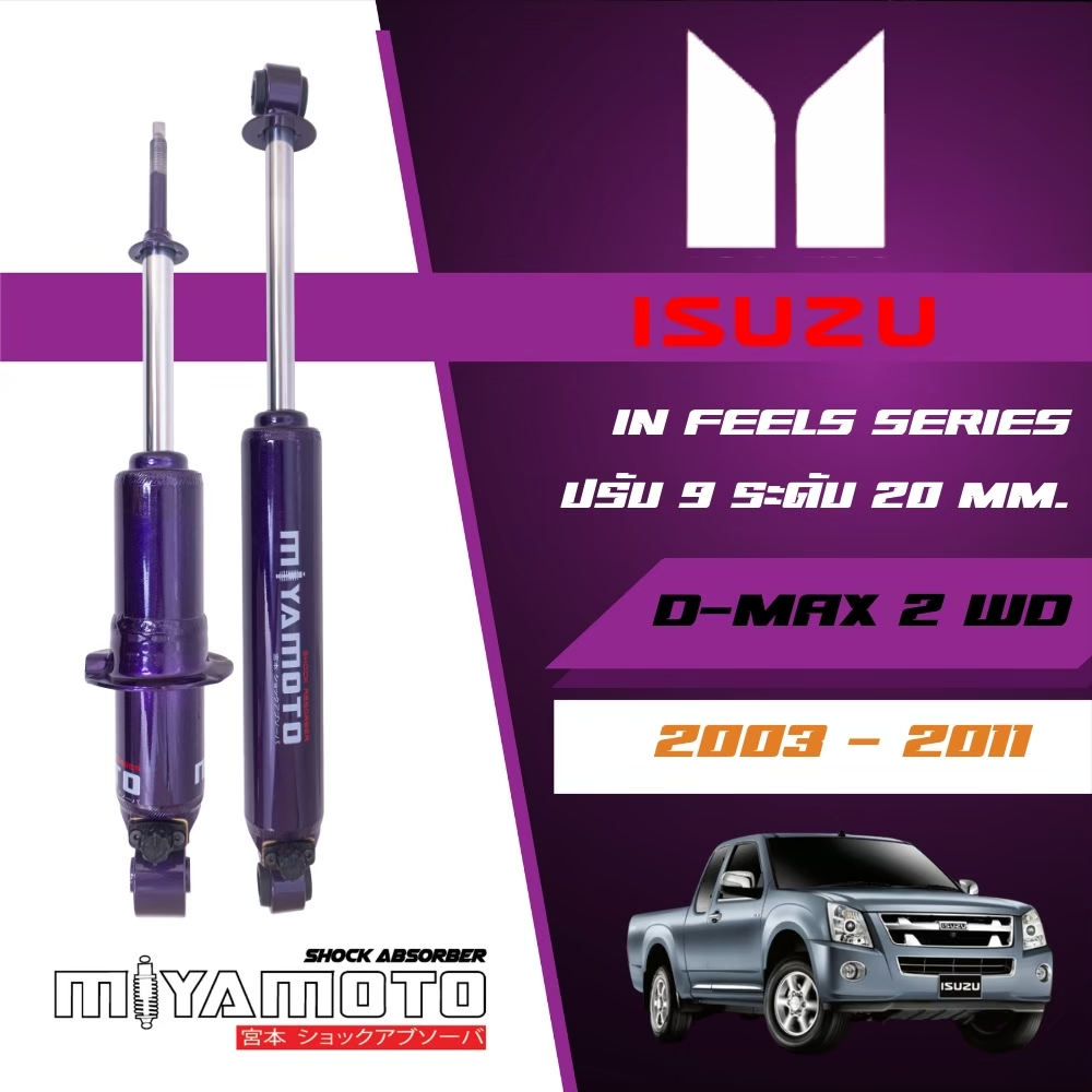 MIYAMOTO โช๊คอัพคู่หลังปรับระดับ แกน 20 มิล รถรุ่น ISUZU : D-MAX / ALL NEW D-MAX 2WD ปี 03-19 ตัวเตี้ย