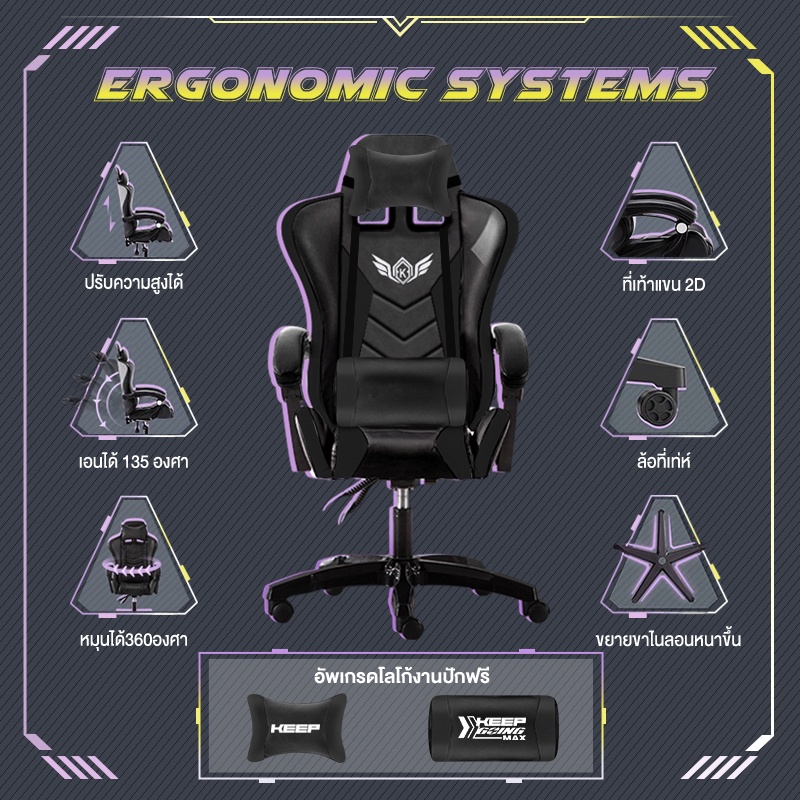Funlove เก้าอี้เกม เก้าอี้เกมมิ่ง ปรับความสูงได้ ที่รองขา+ขาไนล่อน Gaming Chair ใช้สำหรับเล่นเกม เล่นคอมหรือนอนได้