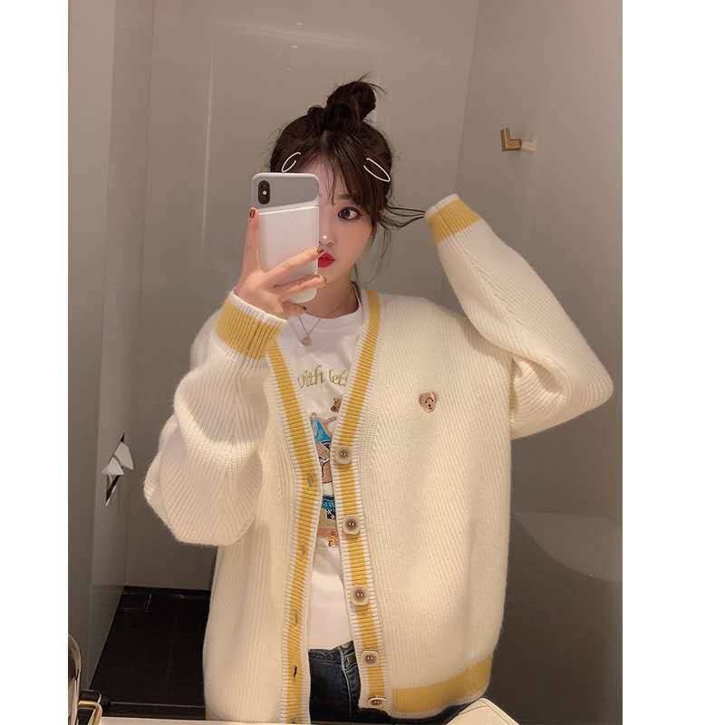 เสื้อคาร์ดิแกนปักหมี แขนยาว เสื้อคลุมกันหนาวผู้หญิงราคาส่ง เสื้อคลุมoversize