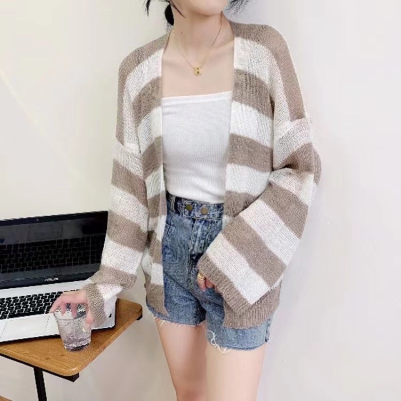 💫 พร้อมส่งจากไทย🇹🇭เสื้อคลุมไหมพรมลายใหม่ ลายขวาง น่ารักมากกก ผ้าไหมพรมแบบบางเหมาะกับอากาศประเทศเวอร์