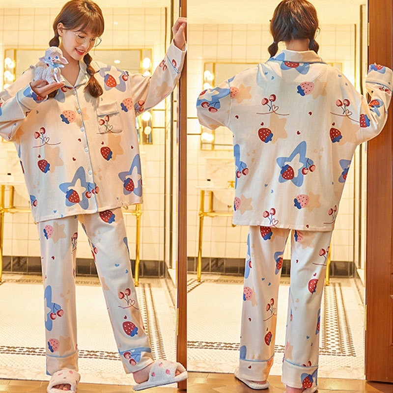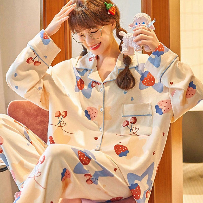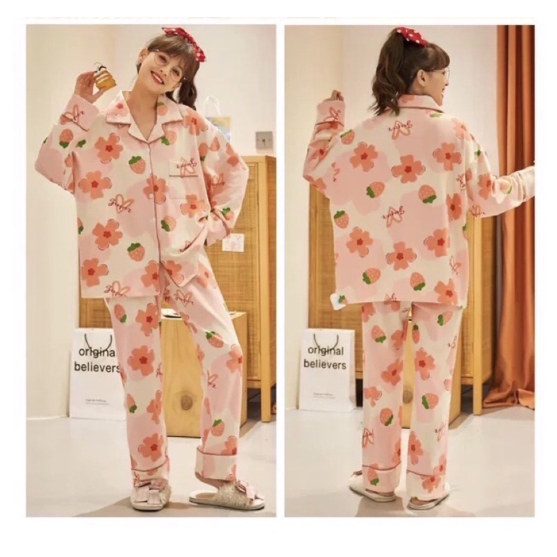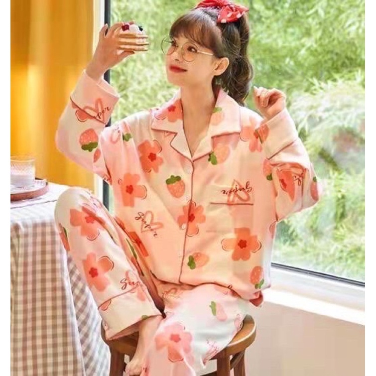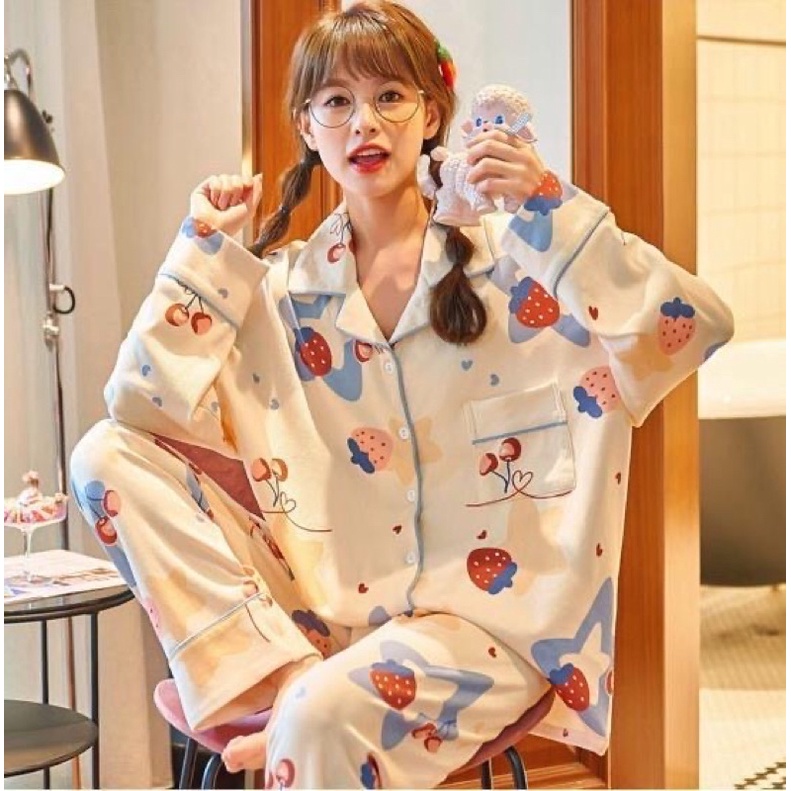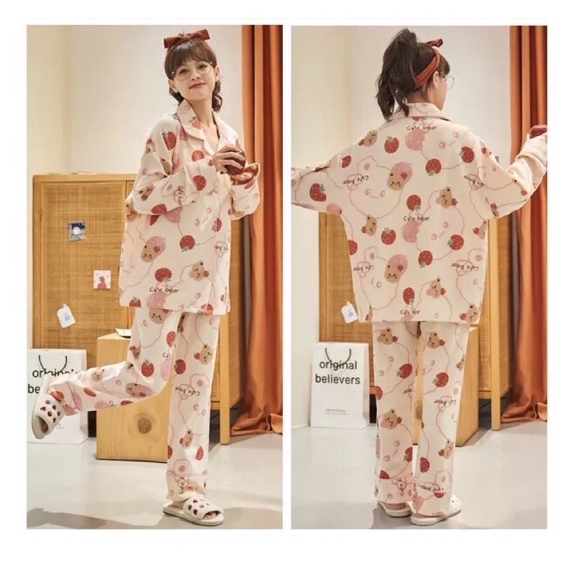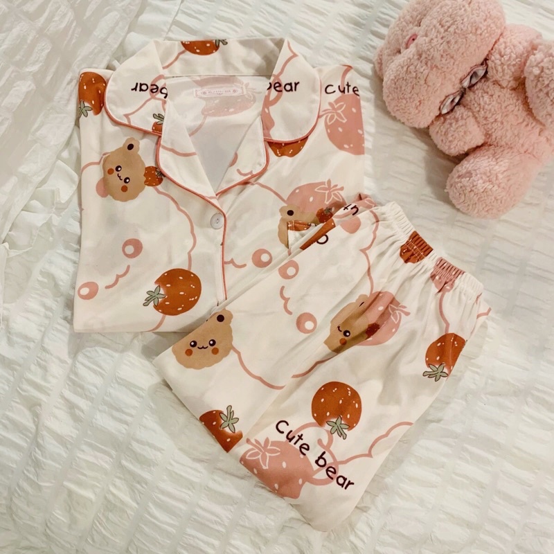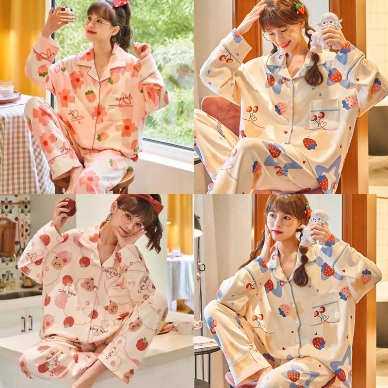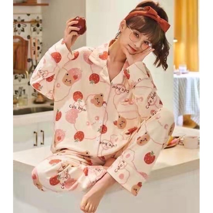 [ใส่โค้ด MOLOVE80 ลดทันที 10%] ชุดนอนผู้หญิง ลายการ์ตูน Cute Bear ต้าวหมี และสตอเบอร์รี่ฉ่ำวาว น่ารัก พร้อมส่ง