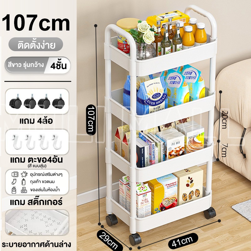 MULI ชั้นว างของรถเข็นพลาสติก 3/4ชั้น พร้อมล้อเลื่อน+ที่จับ รถเข็นเก็บของ เคลื่อนย้ายสะดวก