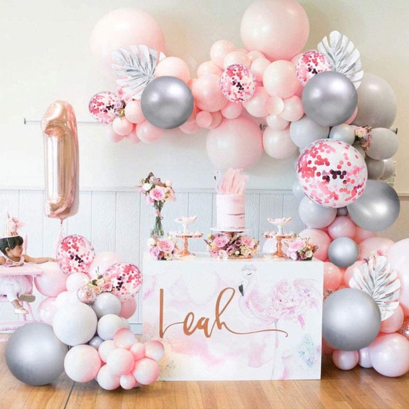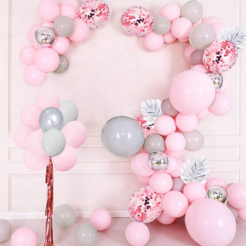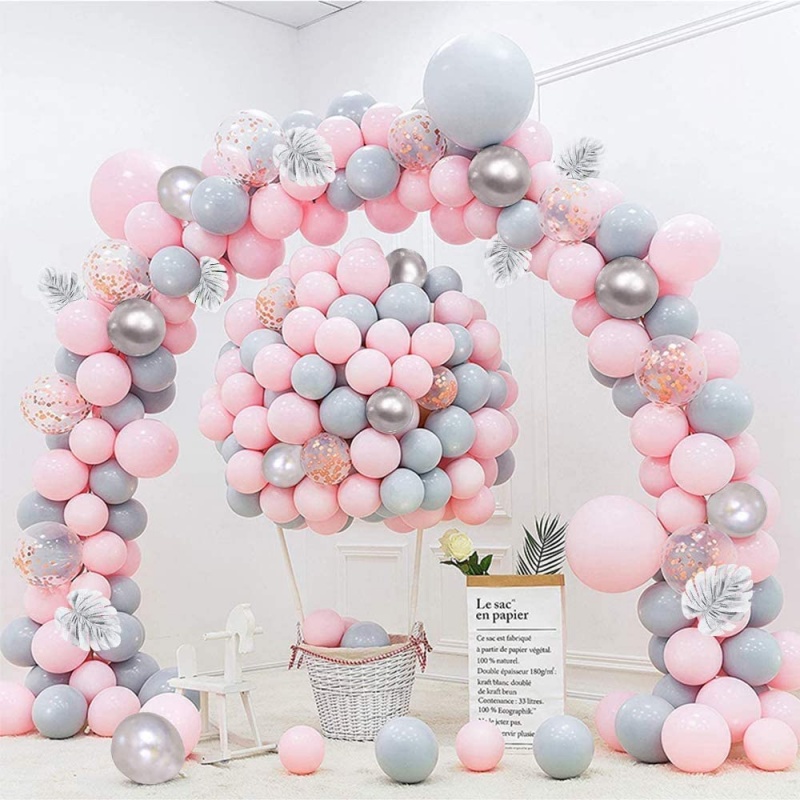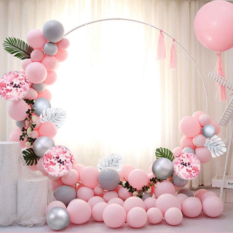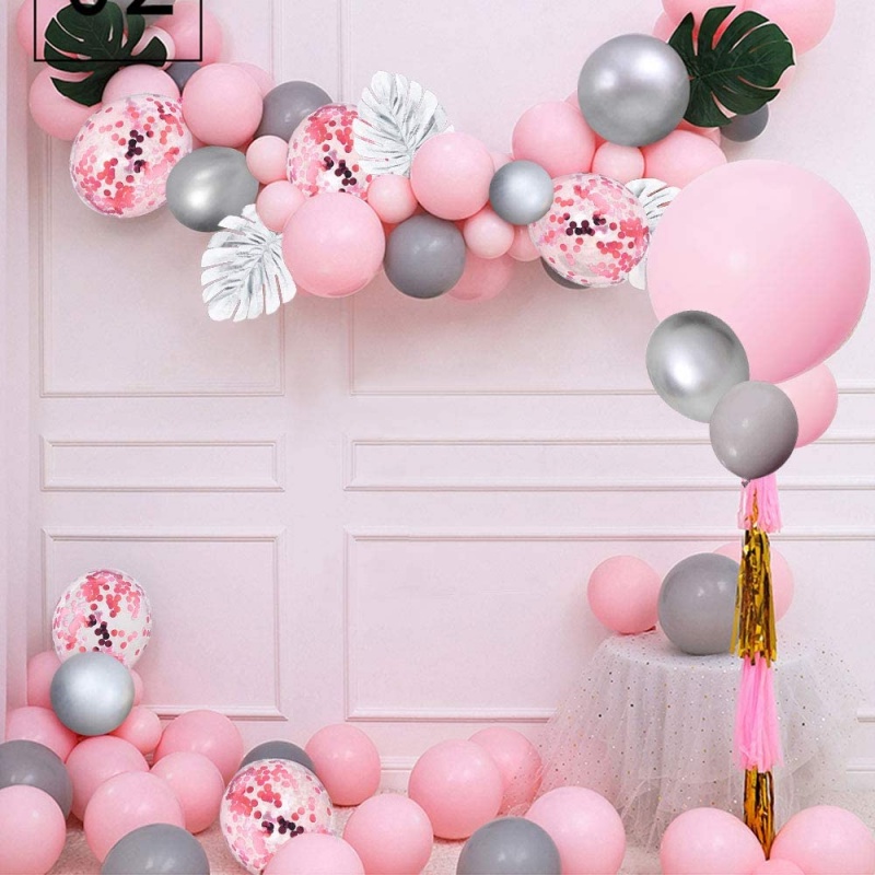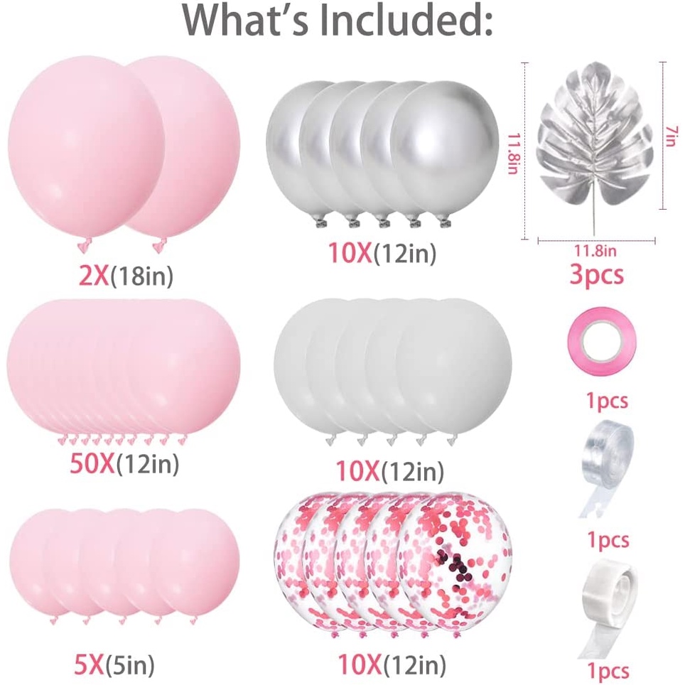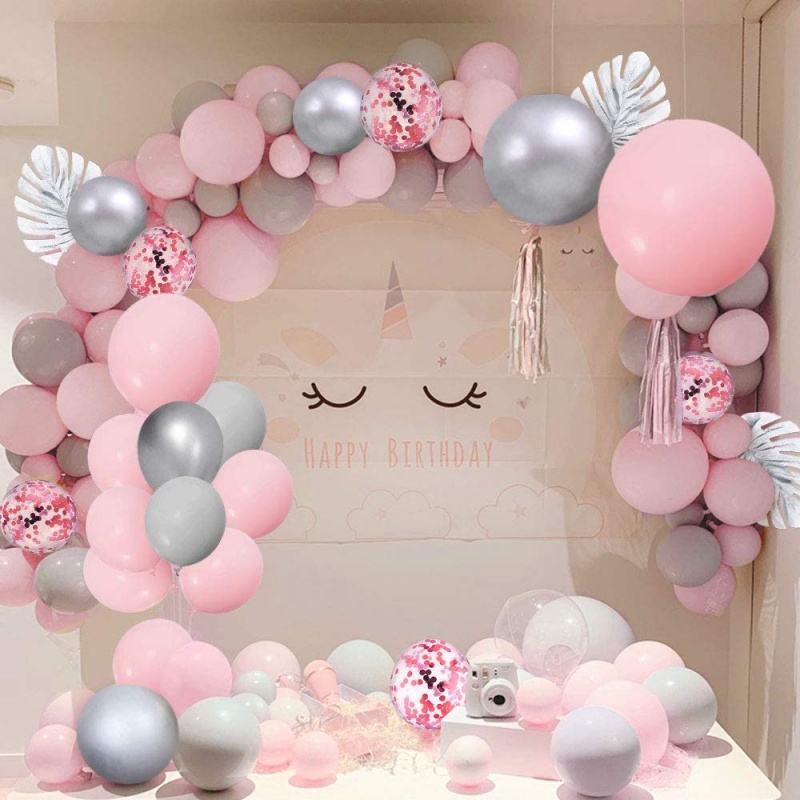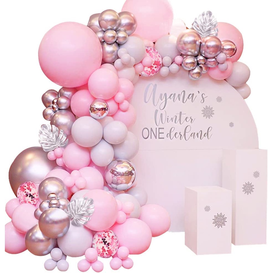 🔥ส่งไวจากไทย🔥ayuqi ชุดลูกโป่งวันเกิด, ลูกโป่งงานแต่งงาน, ลูกโป่งสีเงิน, สีชมพู, 93 ชิ้น