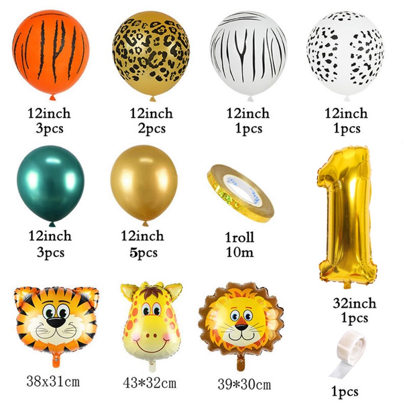 🔥ส่งไวจากไทย🔥 Ayuqi Jungle Animal ชุดลูกโป่งฟอยล์อะลูมิเนียม รูปทรงตัวเลข 0-9 สําหรับตกแต่งปาร์ตี้วันเกิด
