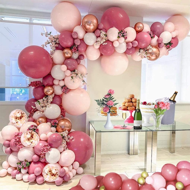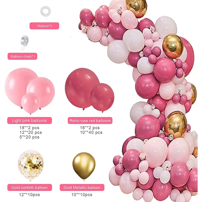ชุดลูกโป่งยาง สีชมพู และสีทอง สําหรับตกแต่งปาร์ตี้วันเกิด และงานแต่งงาน 119 ชิ้น