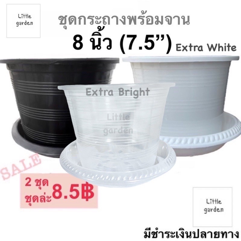 Little ชุดกระถางพร้อมจาน 8 นิ้ว (วัดจริงปากกว้าง 7.5 นิ้ว) 6 นิ้ว กระถางแคคตัส