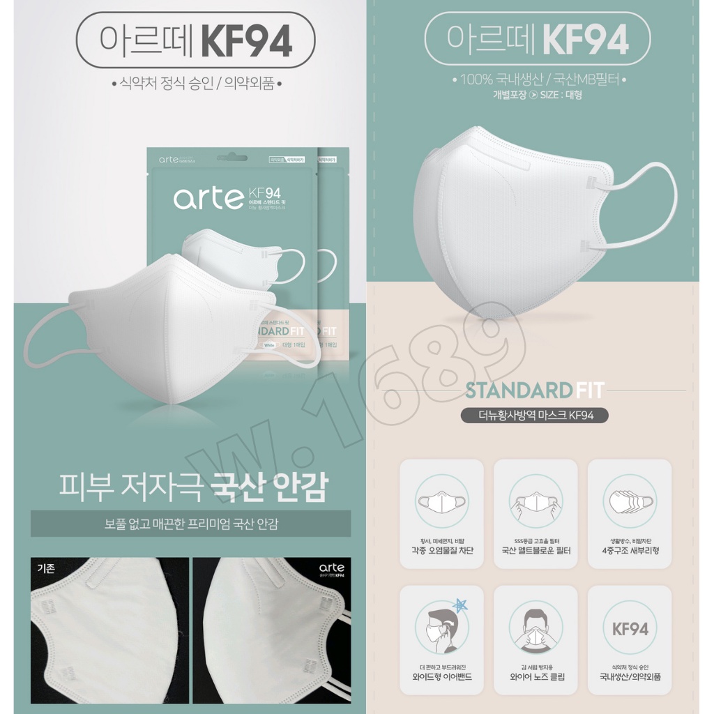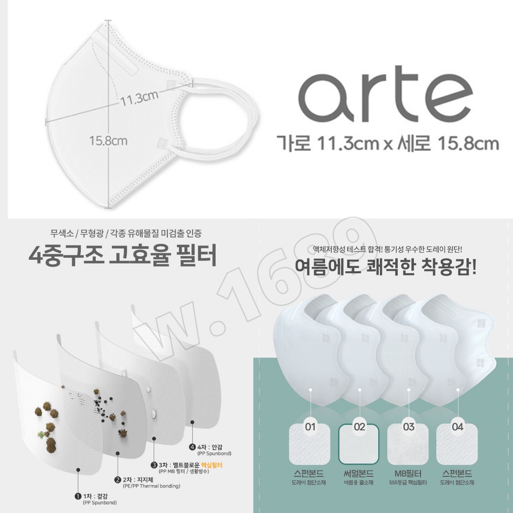 Arte KF94 ของแท้ หน้ากากอนามัยเกาหลี Made in Korea Arte Standard Fit Color Style Bird Beak 3D Mask