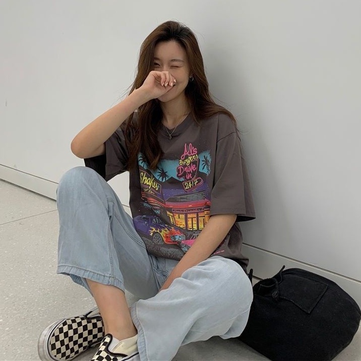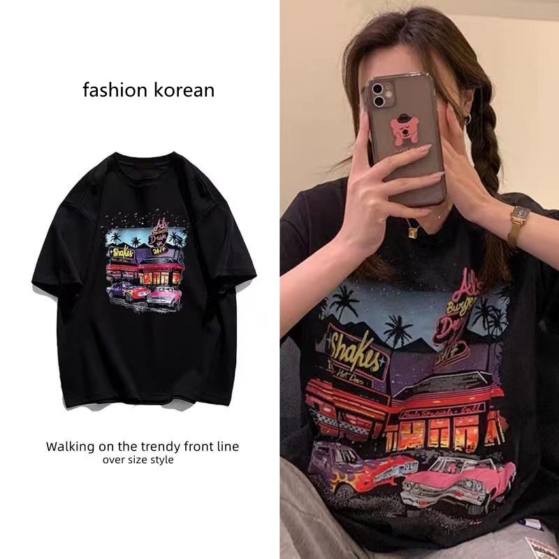 เสื้อยืดแฟชั่นผู้หญิงที่กําลังฮิต oversize เสื้อผ้าวินเทจผู้หญิงสาวอวบ เสื้อโอเวอร์ไซส์ลายการ์ตูนหมี น่ารักสไตล์เกาหลี